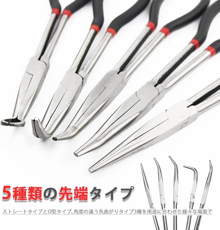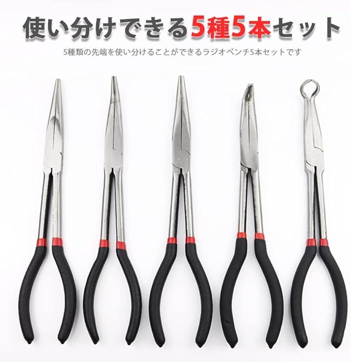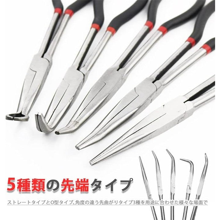 ラジオペンチ ロング プライヤー 先曲がり 0度 25度 45度 90度 O型 5本セット