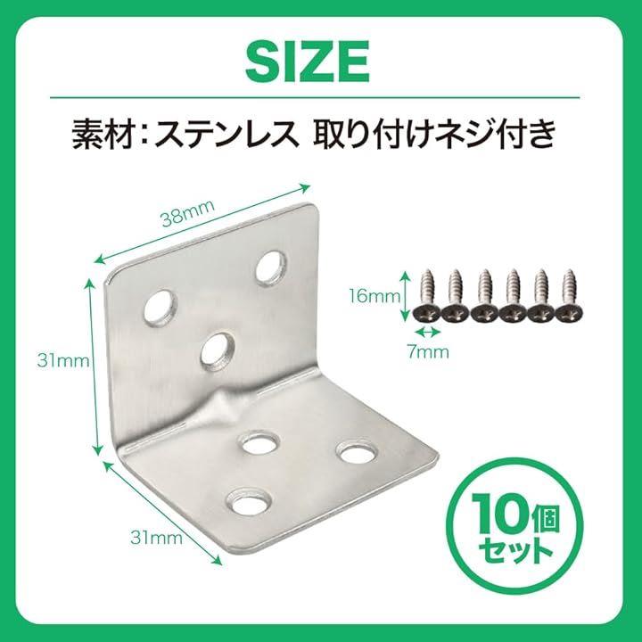 棚受け金具 L型 アングル 31x31x38mm 家具 補強 固定 転倒防止 コーナーブレース ネジ付き 10個セット