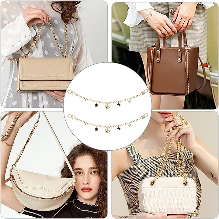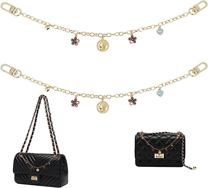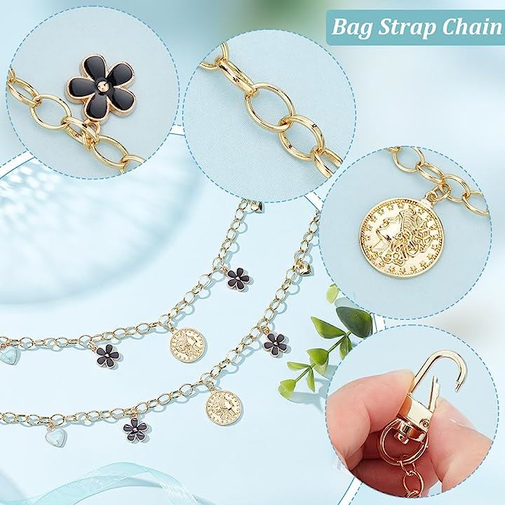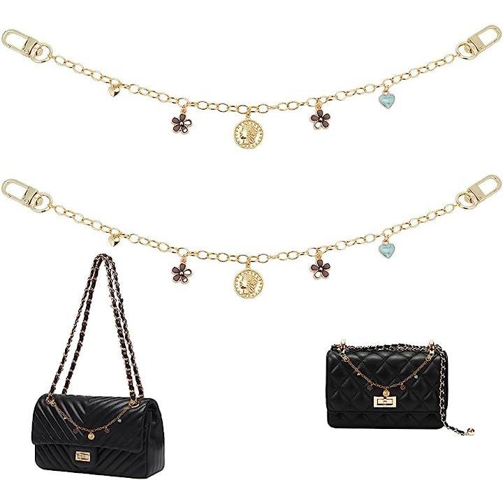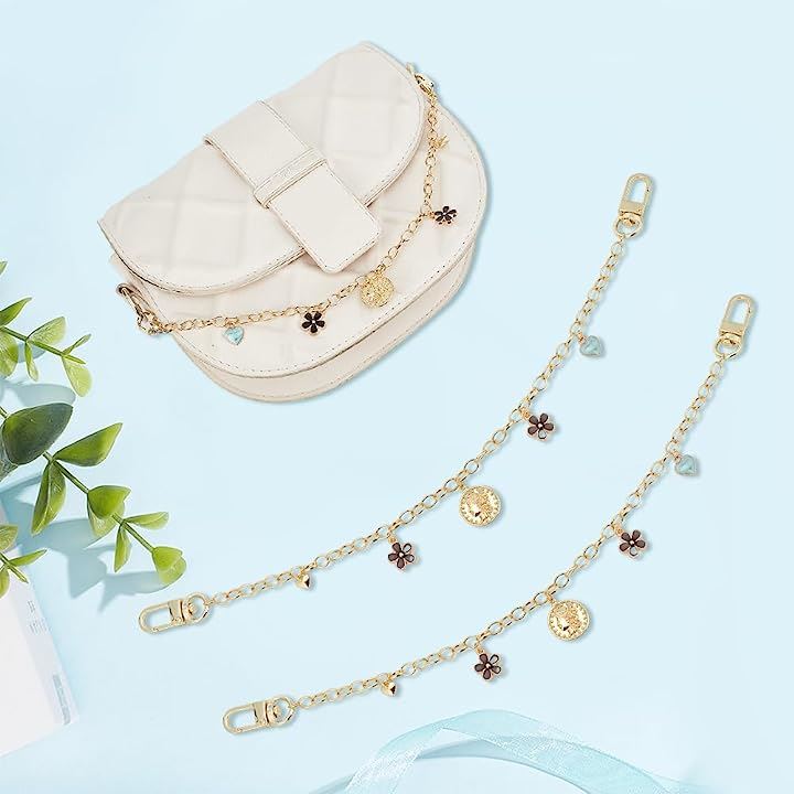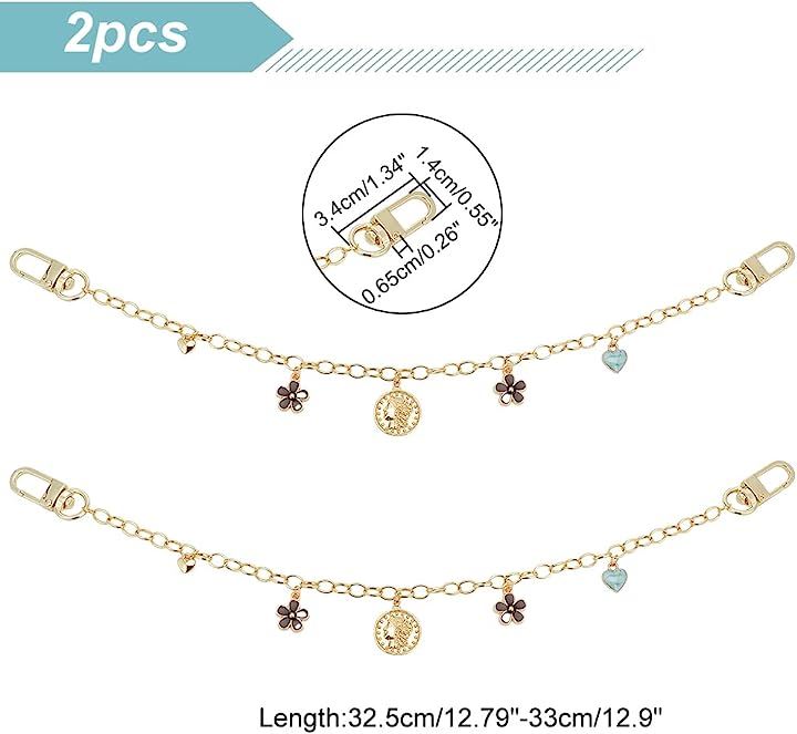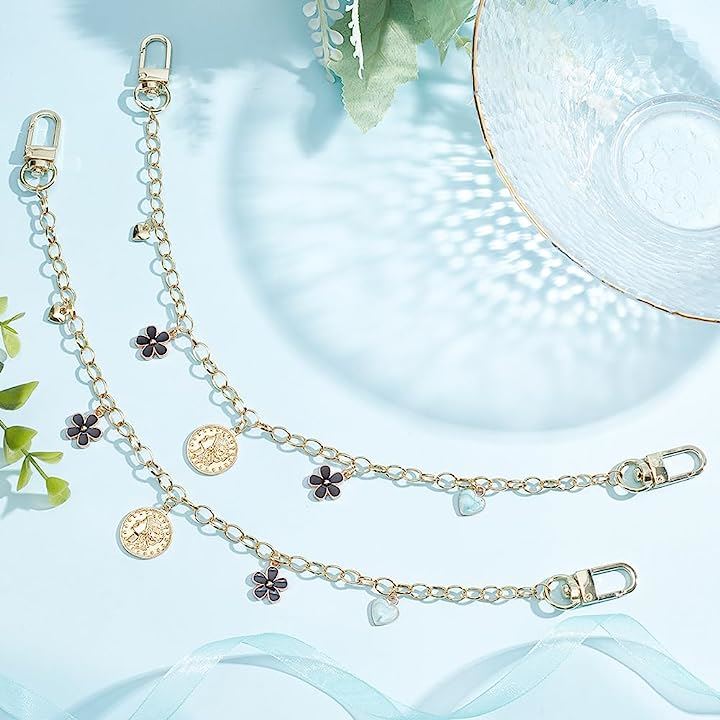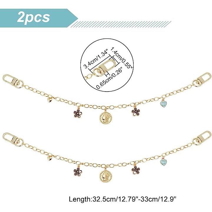 2本 フラワー パースストラップエクステンダー 長さ33cm 交換用チェーン エナメルハート型 留め金付き 斜めがけ バッグチャーム セミショルダーバッグ用 デコアクセサリー
