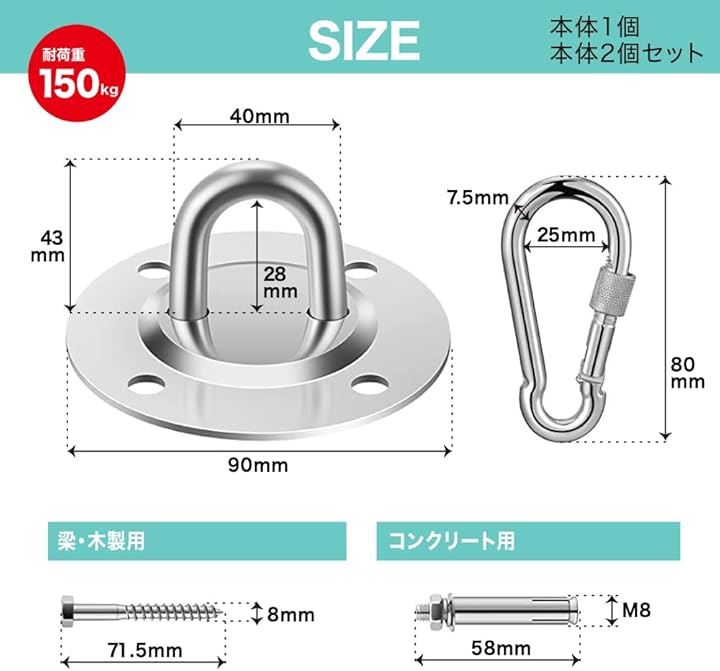 天井フック 壁 金具 取り付け 吊り下げ 吊り金具 ハンモック エアリアルヨガ
