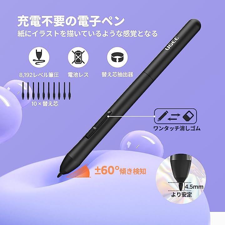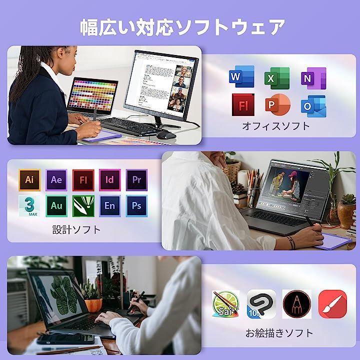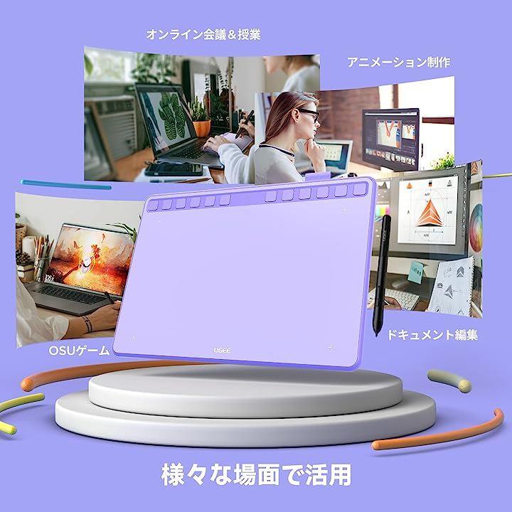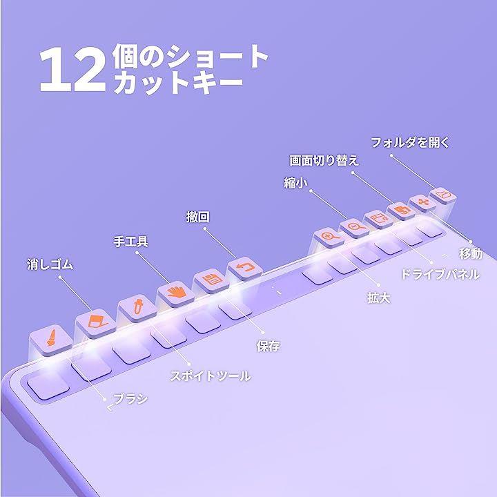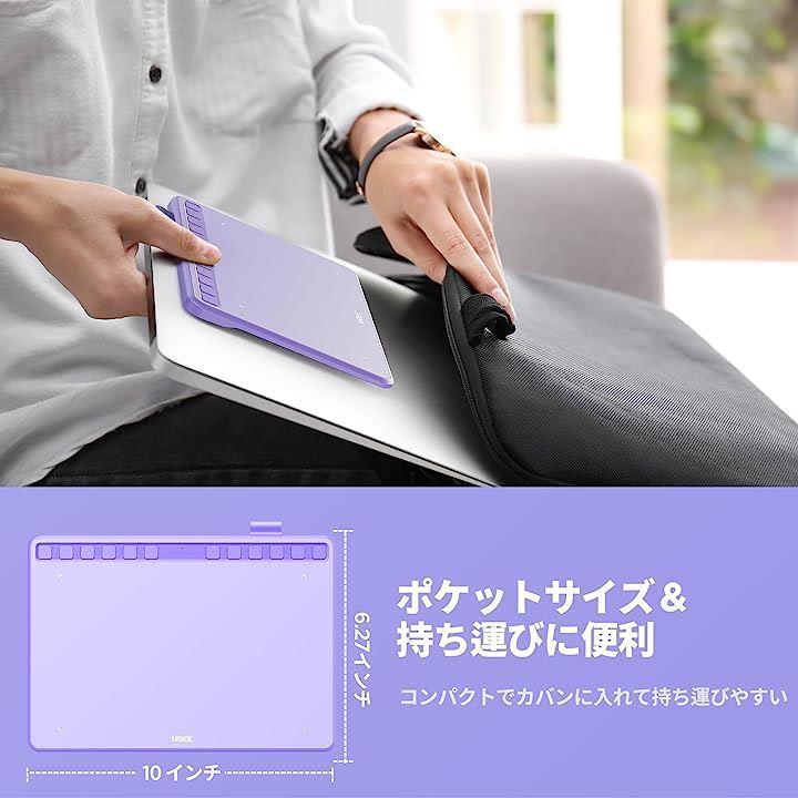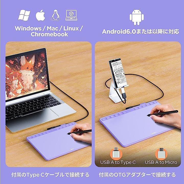 互換品ペンタブ S1060PP ペンタブレット 板タブ ショートカットキー12個 8192レベル筆圧 60°傾き検知 イラスト OSUゲーム お絵描き OTGアダプター付き パープル
