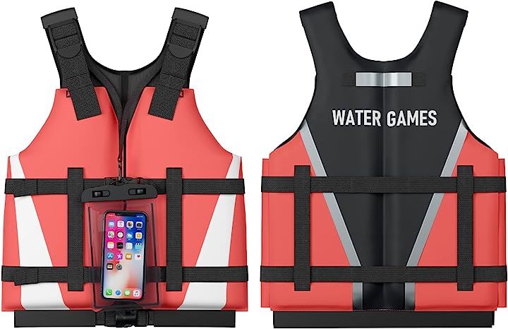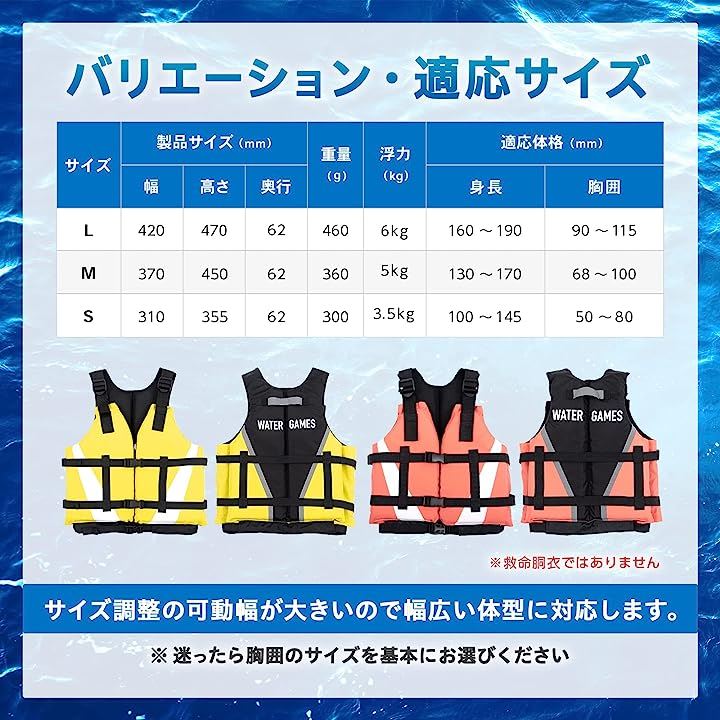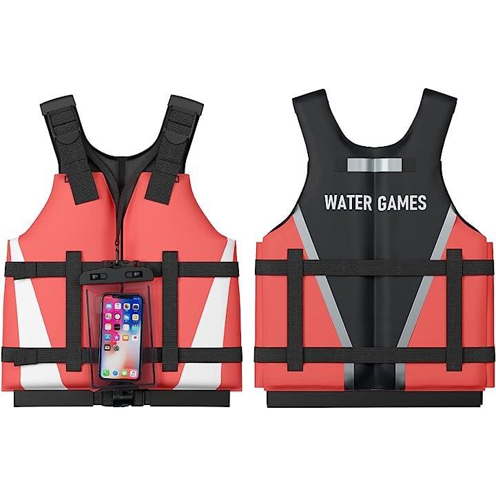 WATER GAMES ライフジャケット フローティングベスト シュノーケリングベスト 大人用 子供用 防水スマホケース 付き 日本国内メーカー 一般財団法人日本船舶品質管理協会 製品安全評価センター 浮力測定実施済 (大人用 Mサイズ/エンパイアローズ) |