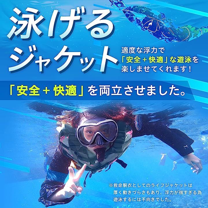 「快適なフィット感」WATER GAMESのシュノーケリングベストは、体にぴったりとフィットし、スタイリッシュな見た目と快適な動きを実現。