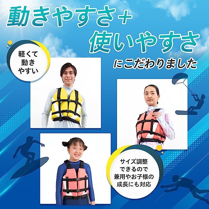 水中での自由な動きをサポートし、ウオータースポーツをより楽しいものにします。