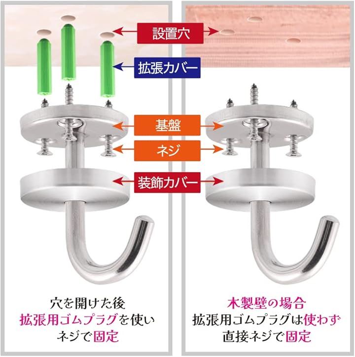 AllBright 天井フック 吊り下げ ハンキング 固定 壁 壁掛け 耐荷重5kg 4個セット