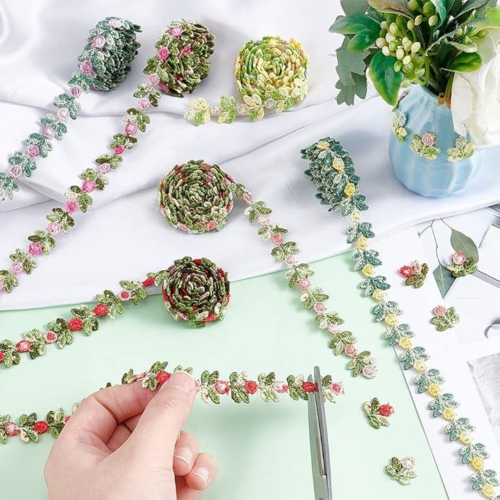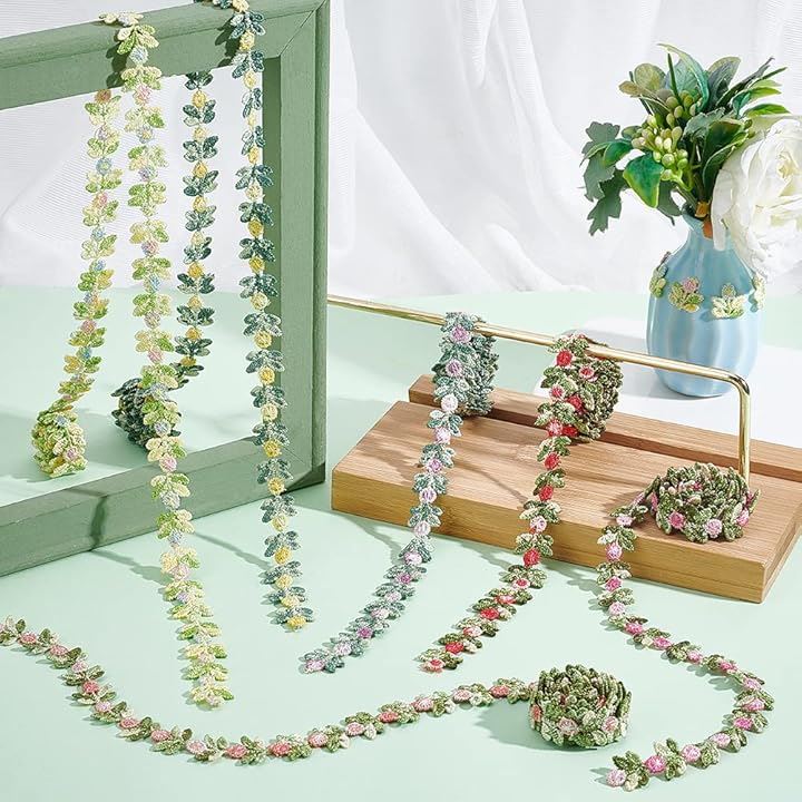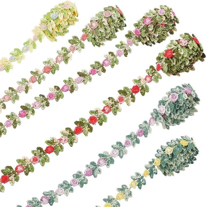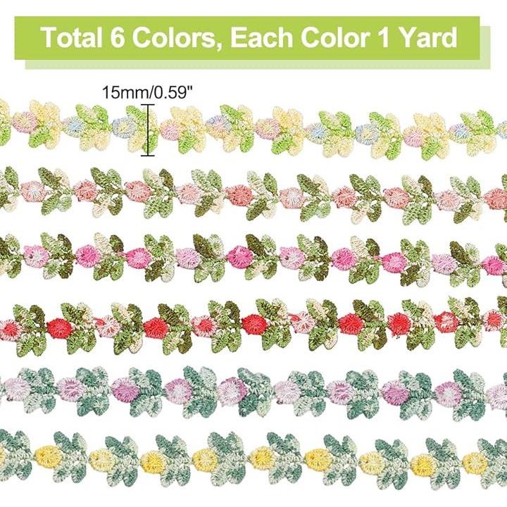 6色 手芸ブレード 刺繍 花柄 レースリボン カラフル フラワー モチーフ レーストリム 高級 飾り カーテン 服 枕 帽子 装飾 ハンドメイド 材料 DIY 裁縫材料 おしゃれ 華麗 プレゼント用の包装 幅15mm 1本の長さ0.9m