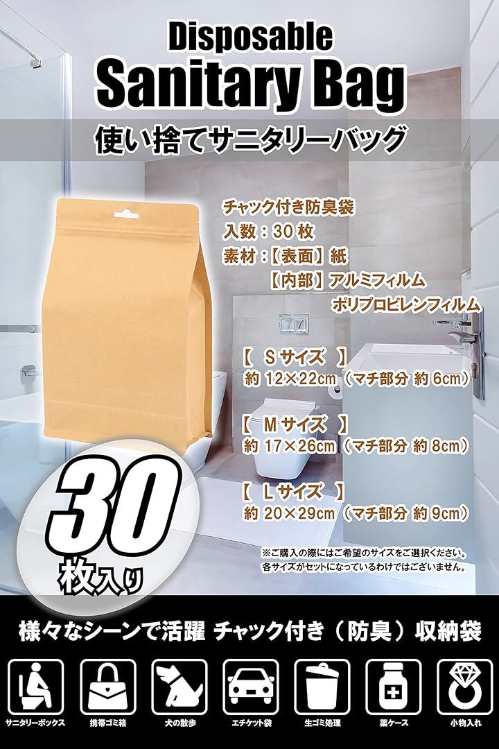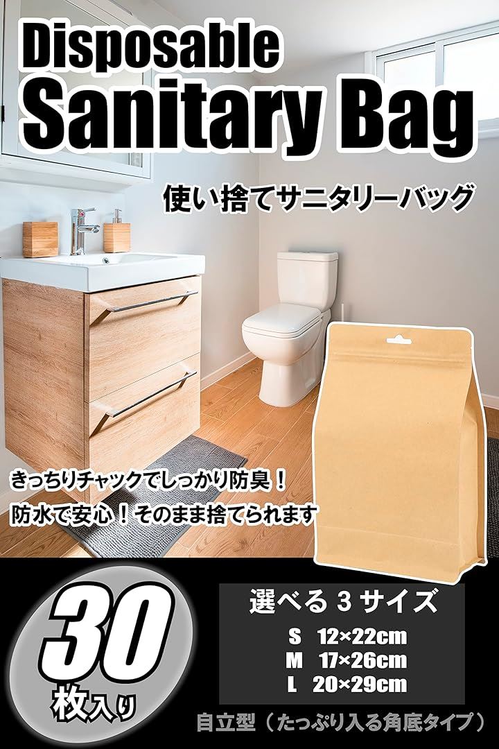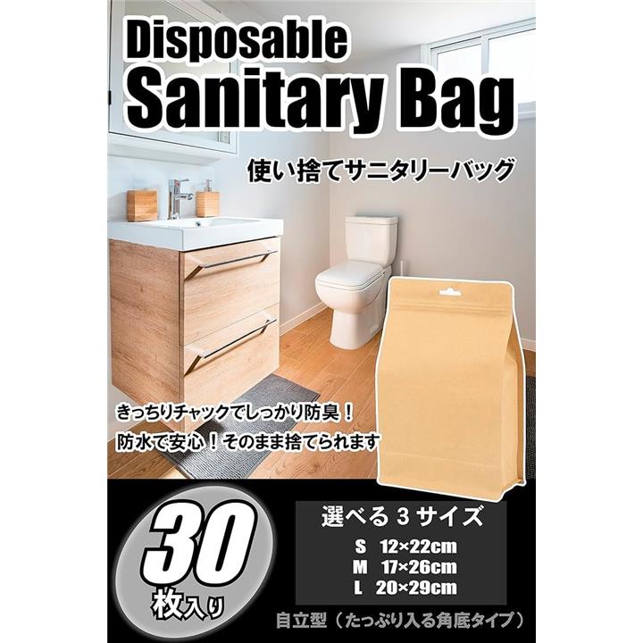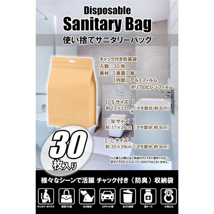使い捨て サニタリー袋 マチ広 30枚 防臭袋 サニタリーボックス チャック付き 防水 ナチュラル