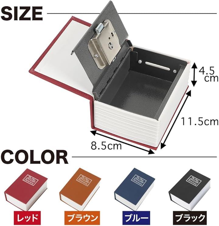 AllBright 隠し金庫 本型金庫 貴重品 保管 防犯 小型 ダイヤルロック セーフティボックス 鍵付き ブルー