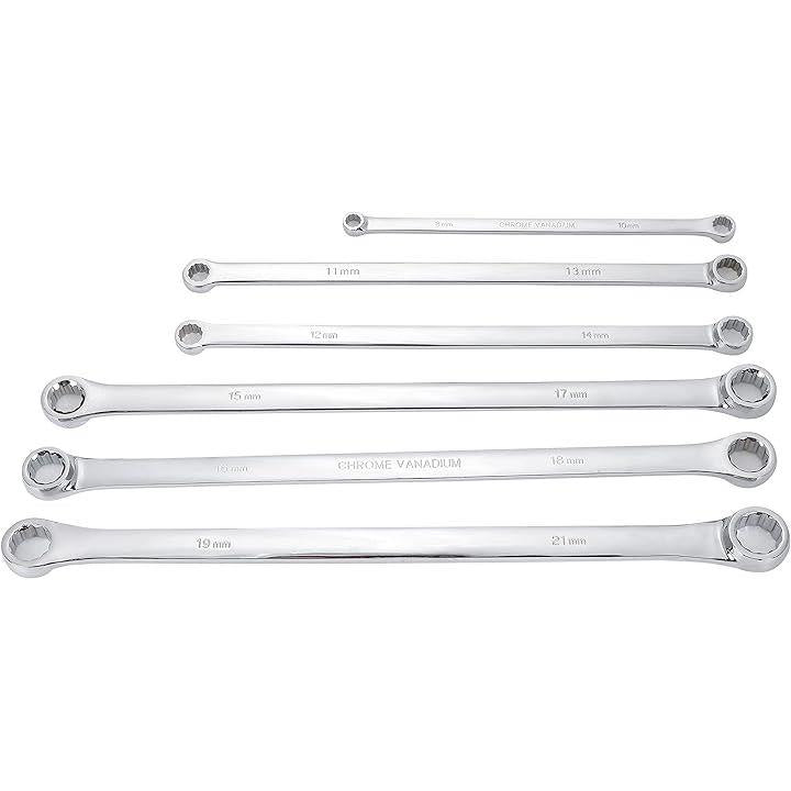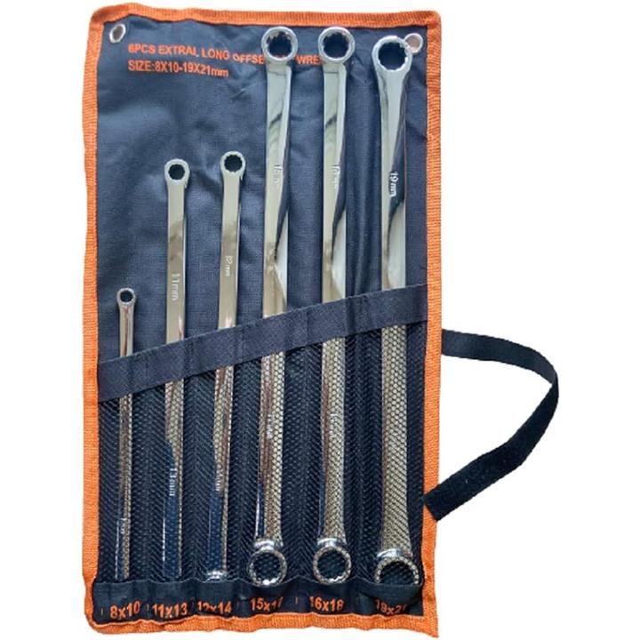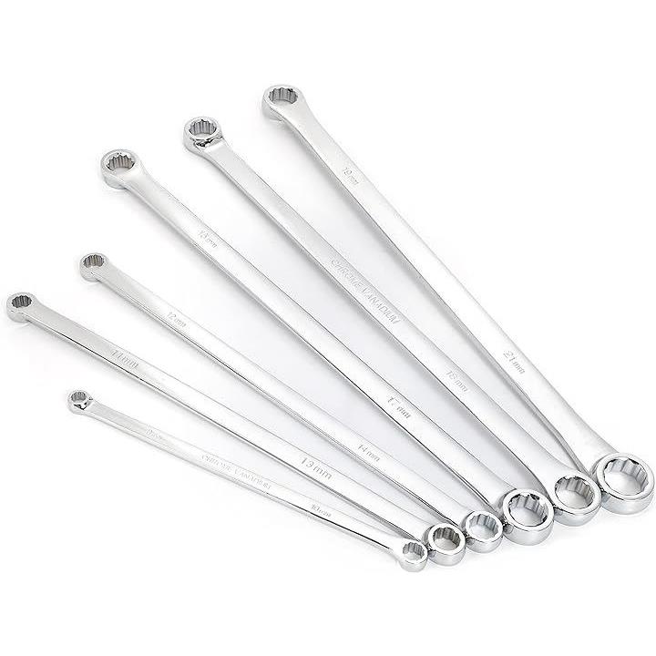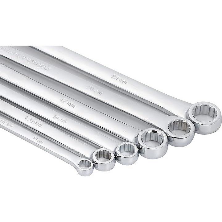 メガネレンチセット ロング ストレート ロングタイプ ミリサイズ ミラー仕上げ 8~21mm 収納ケース付 6本組