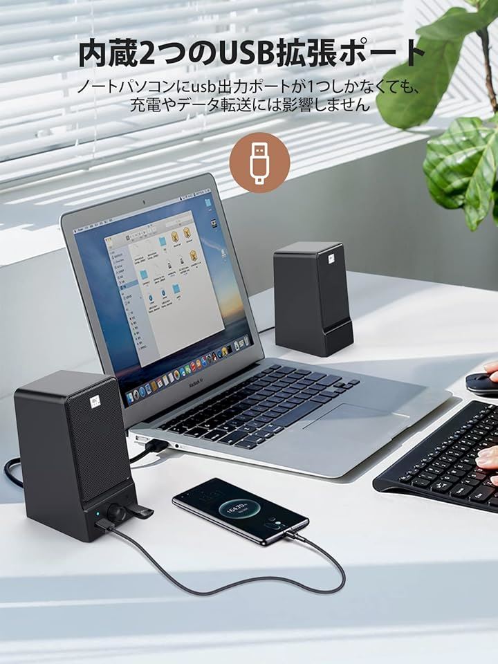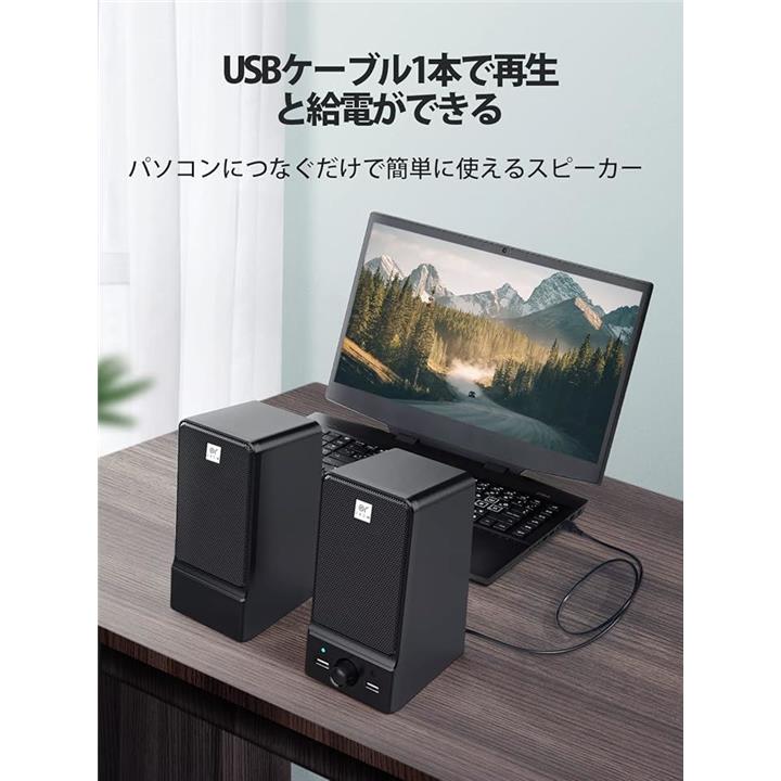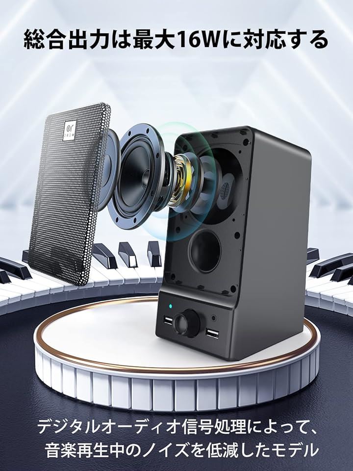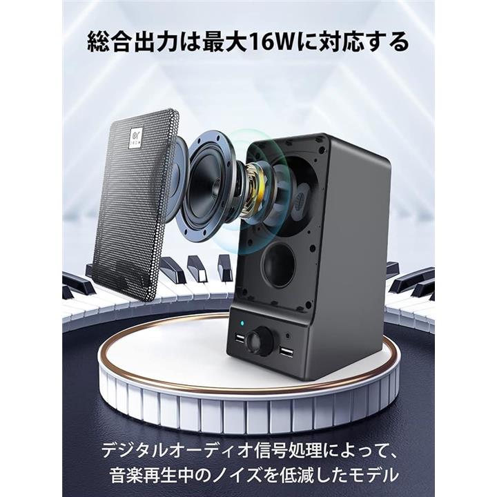 OROW 16W出力 USBスピーカー ラップトップスピーカー ヘッドホンジャック&つまみ付き パソコン/モニター用 S203