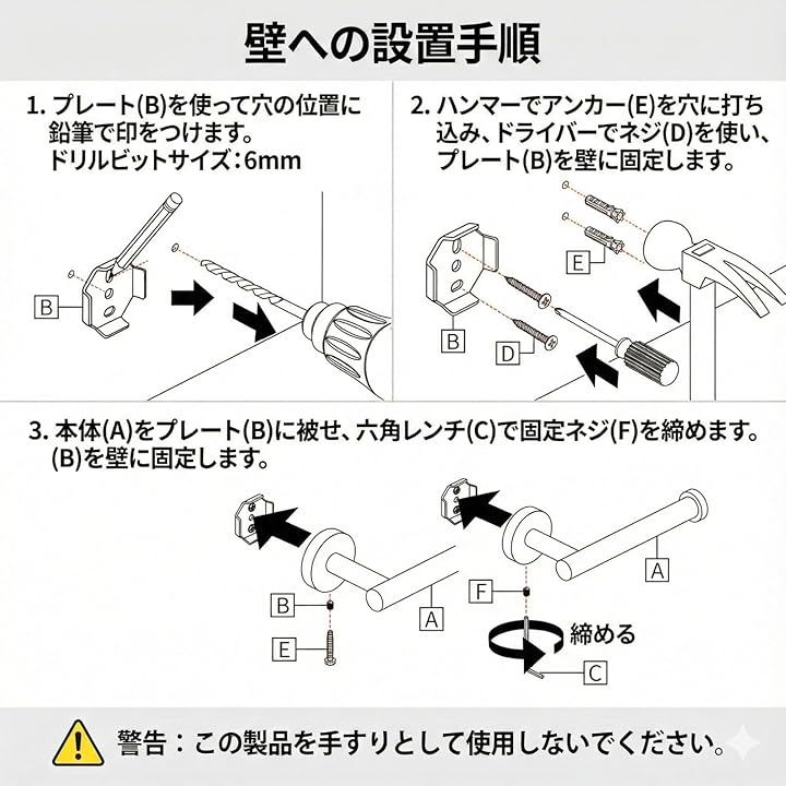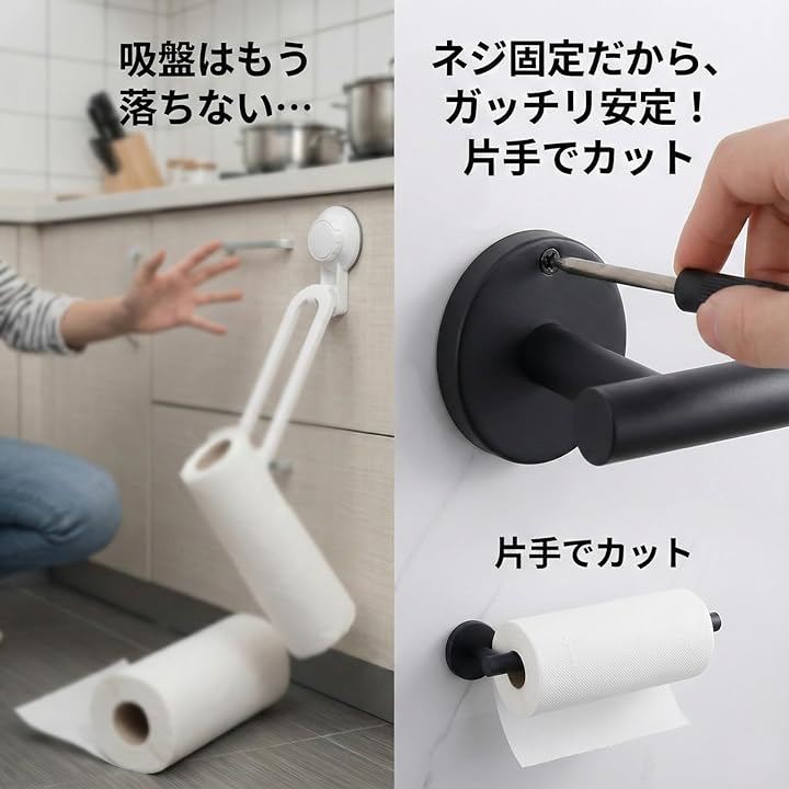 キッチンペーパーホルダー 壁掛け ステンレス ネジ固定 ロールホルダー