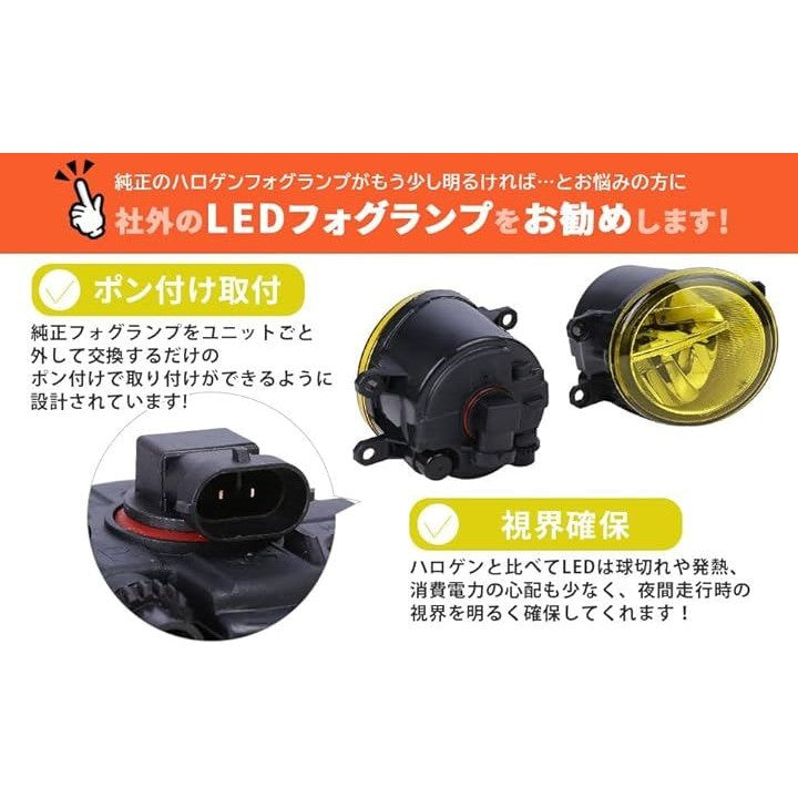互換品トヨタ 用 30系 イエロー 黄色 LED フォグ ランプ ユニット 汎用 左右 セット プリウス 40 プリウスα 10 アクア 等 後付 社外品 ドレスアップ カスタム パーツ