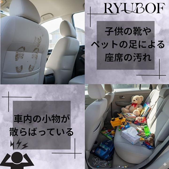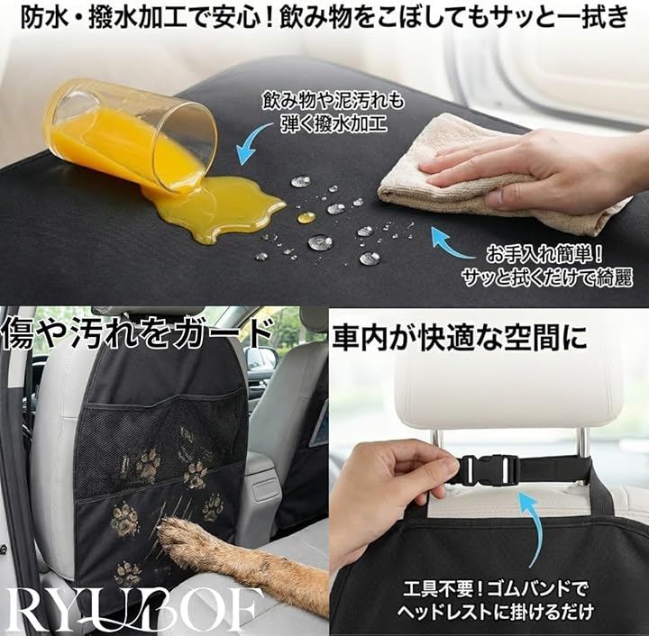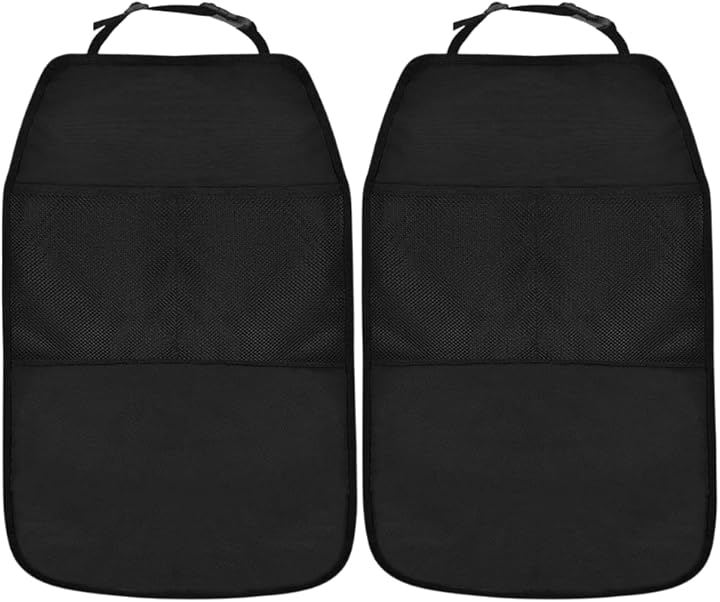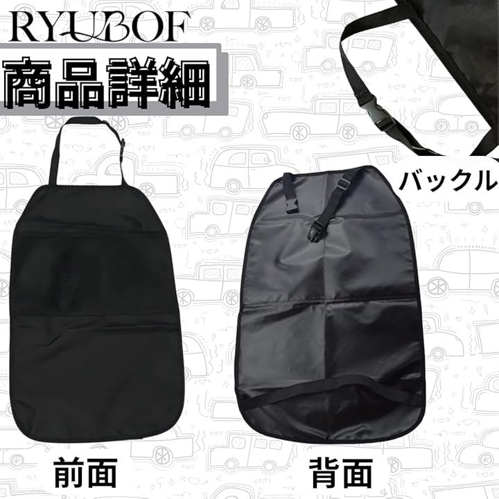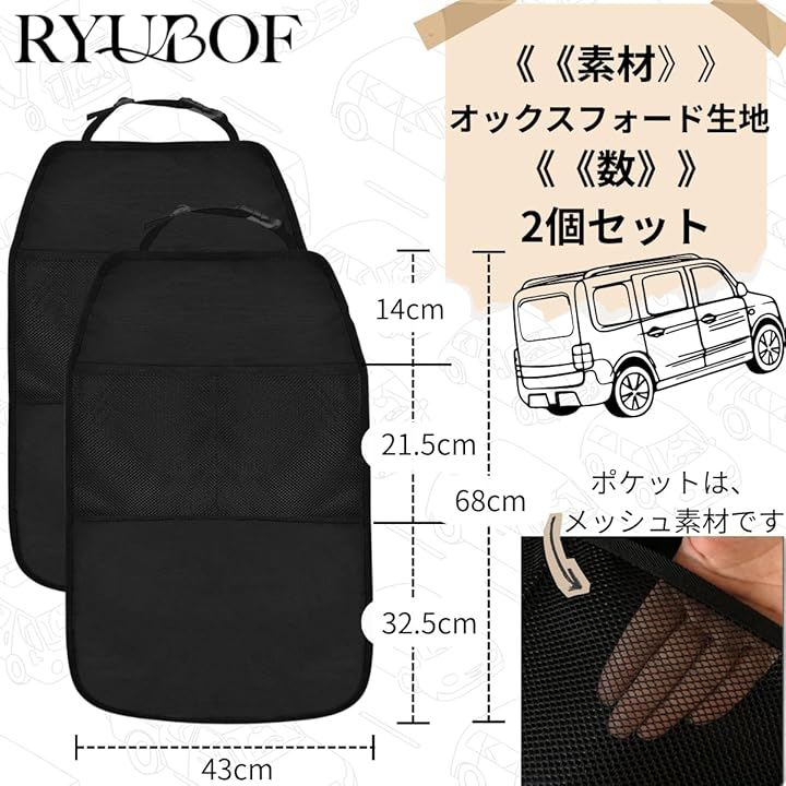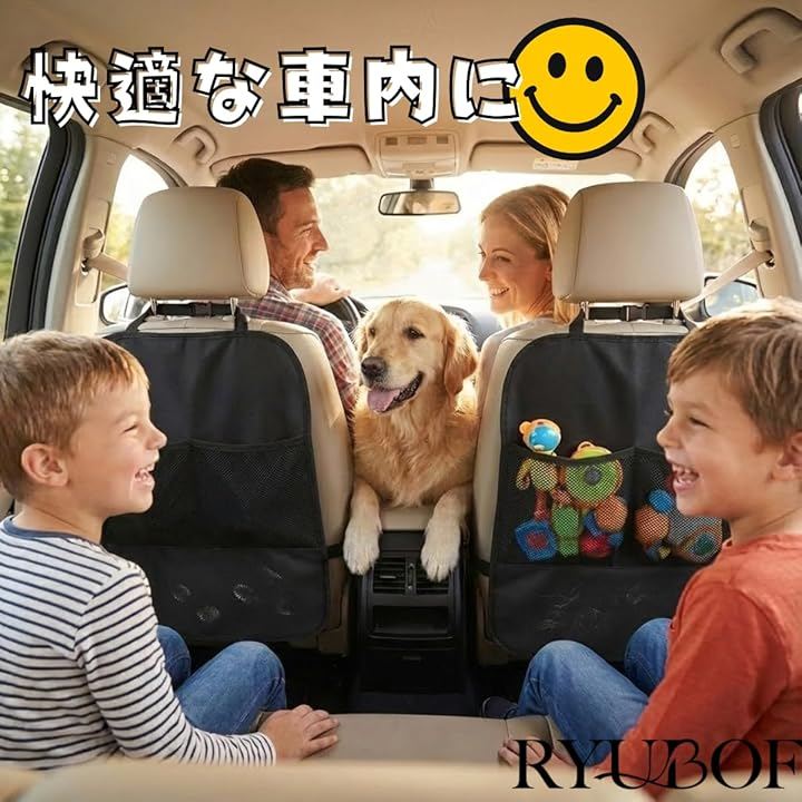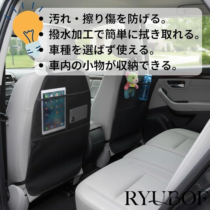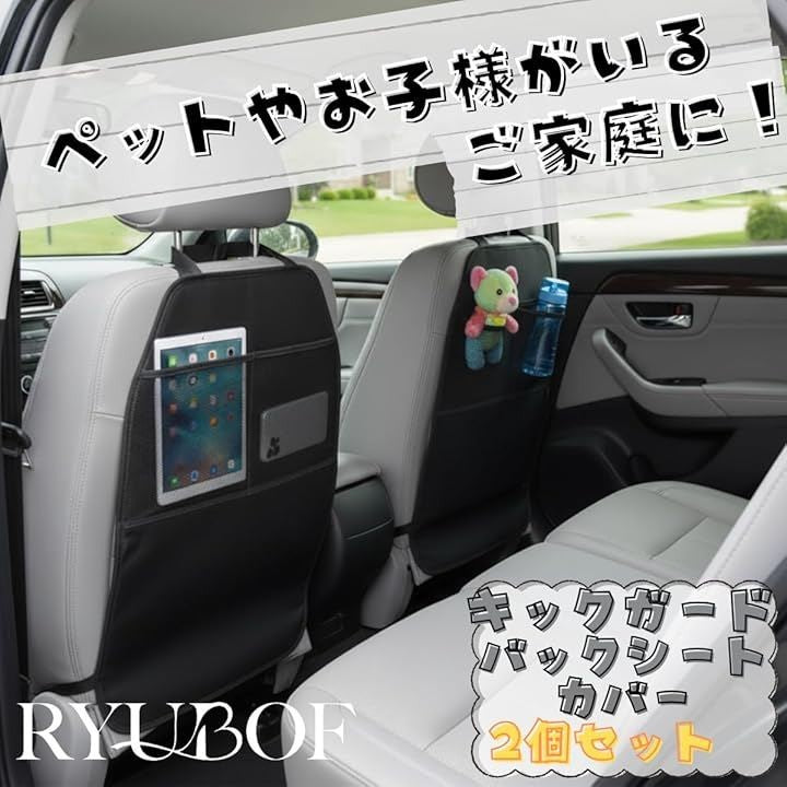キックガード 車 シートカバー 後部座席 汚れ防止 防水 シートバックポケット 小物収納 2枚セット 車用 小物収納ポケット付き カーシートバック ブラック