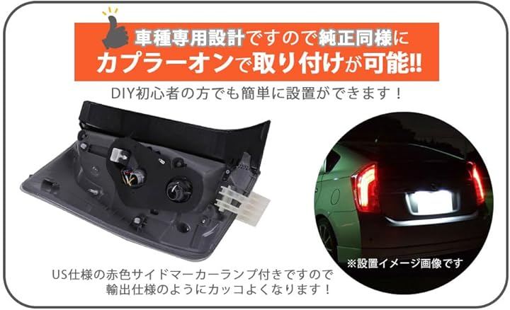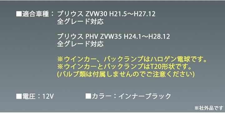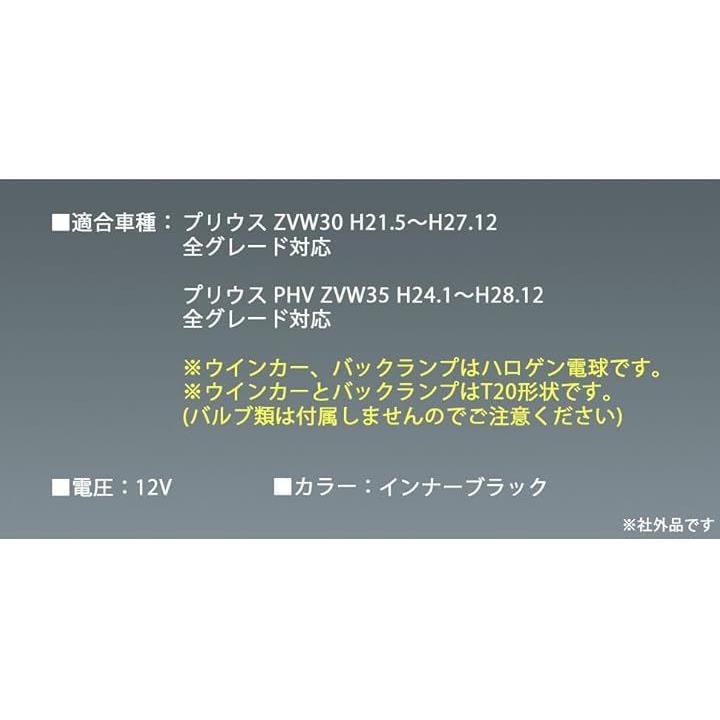 互換品30系 プリウス テールランプ ウインカー バックランプ インナー ブラック 左右セット 後期 仕様 USルック ZVW30 ZVW35 前期 北米 社外品