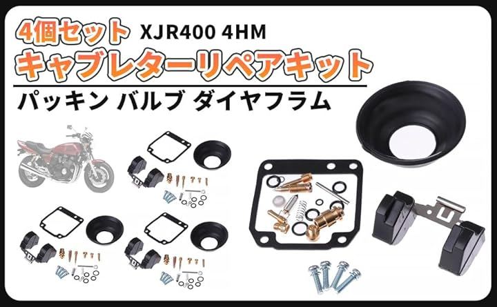 互換品ヤマハ 用 XJR400 4HM キャブレター リペアキット 4個セット オーバーホール パッキン バルブ ダイヤフラム 汎用 補修 修理 ガソリン 漏れ クリーニング メンテナンス