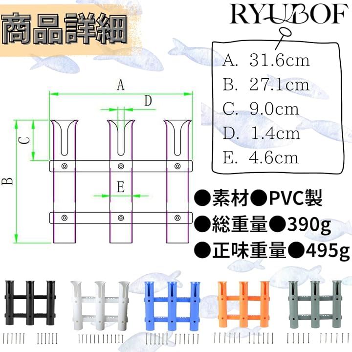ロッドホルダー 3連 釣竿 スタンド 収納 メイホウ ロッドスタンド に負けない 安定設計 釣竿を立てる方法に最適 ボート 船 カヌー カヤック 用 PVC製