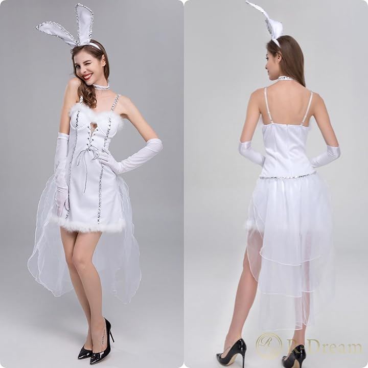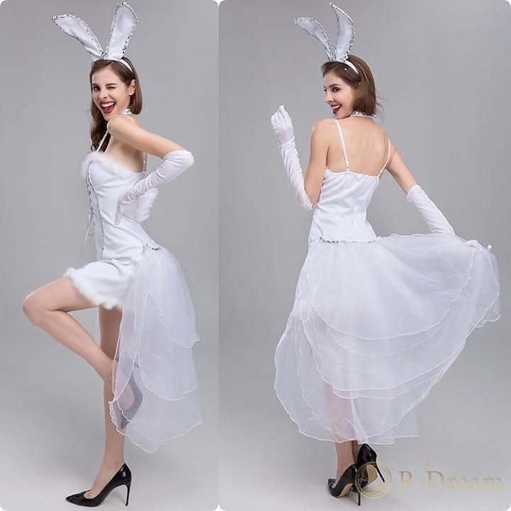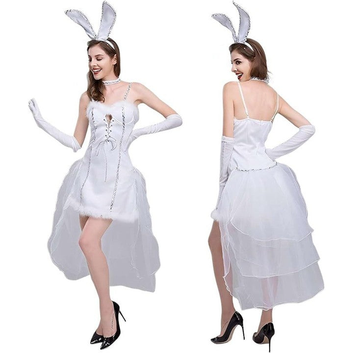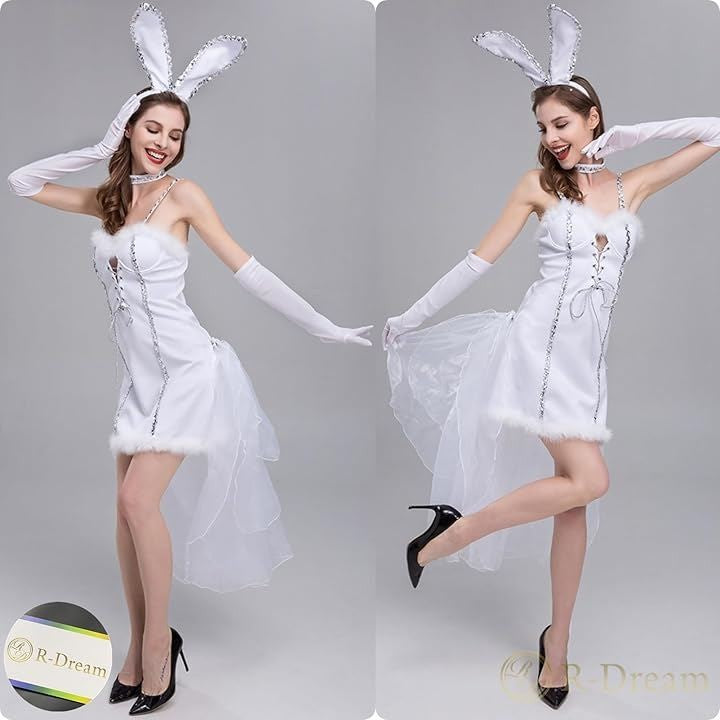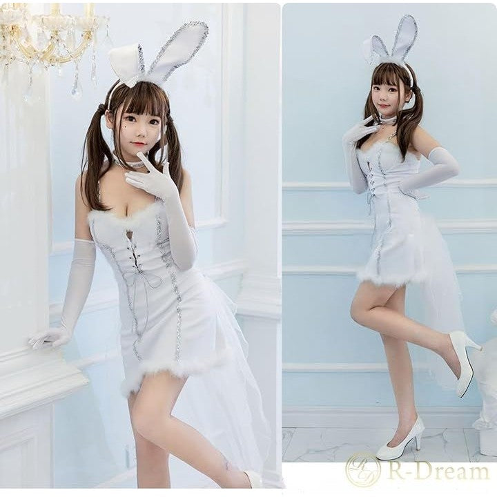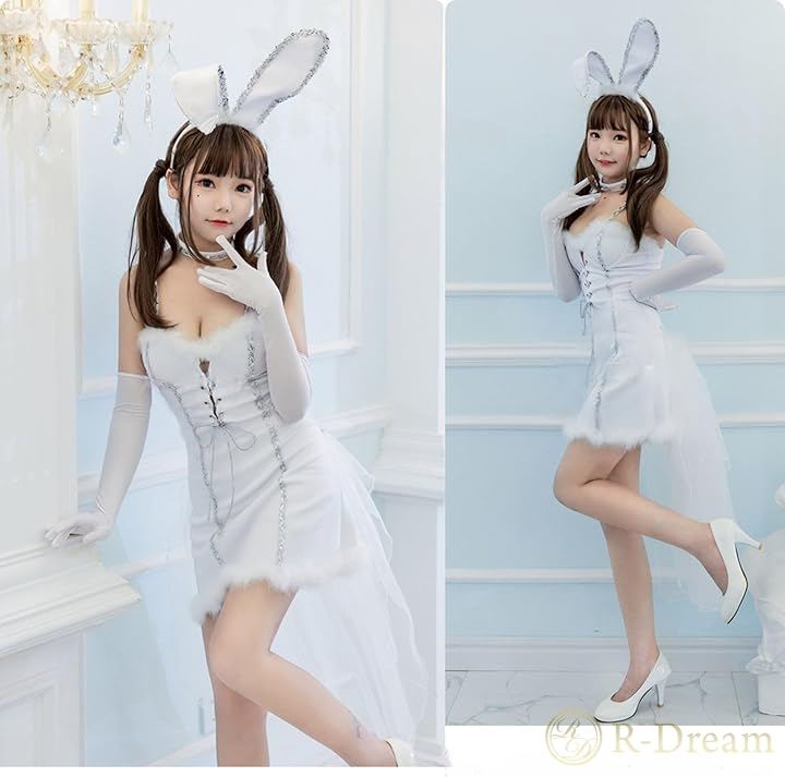 バニーガール コスプレ ホワイト 白 ロンググローブ セット コスチューム 衣装 大きいサイズ メンズ 女装 男性 イースター ハロウィン 仮装 うさぎ かわいい