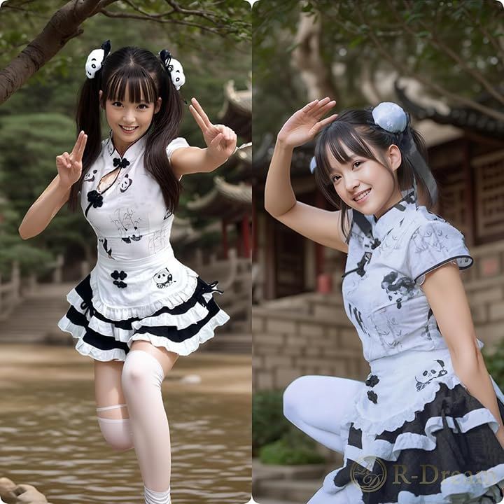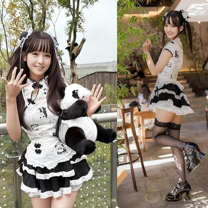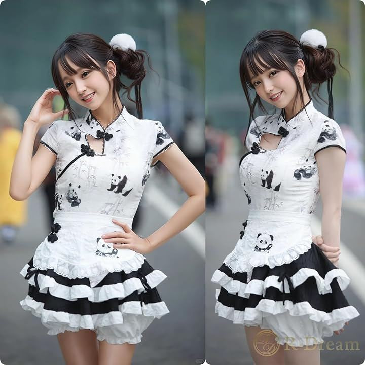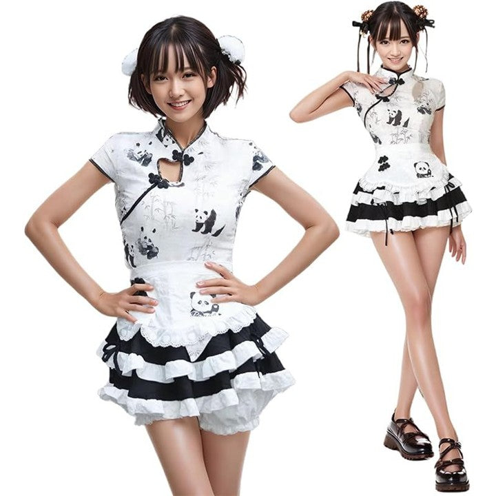 チャイナ服 コスプレ チャイナドレス パンダ柄 コスチューム 衣装 可愛い 大きいサイズ ハロウィン 仮装 メンズ 女装 中華 スカート