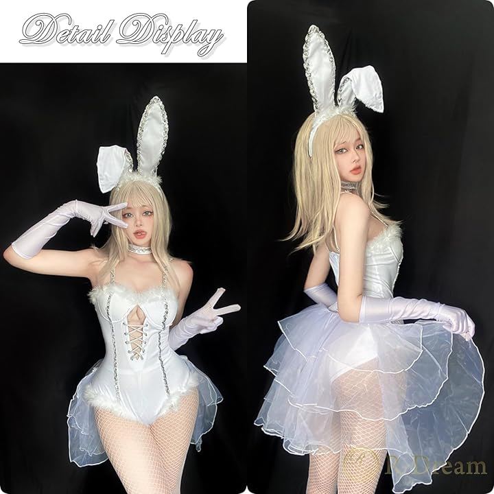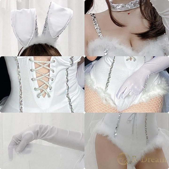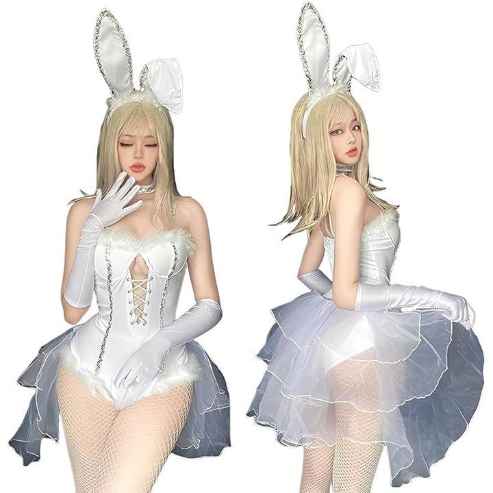 ホワイト バニーガール コスプレ 白 コスチューム 衣装 ハイレグ うさぎ ハロウィン 仮装 テールスカート ミニ 可愛い レオタード エレガント