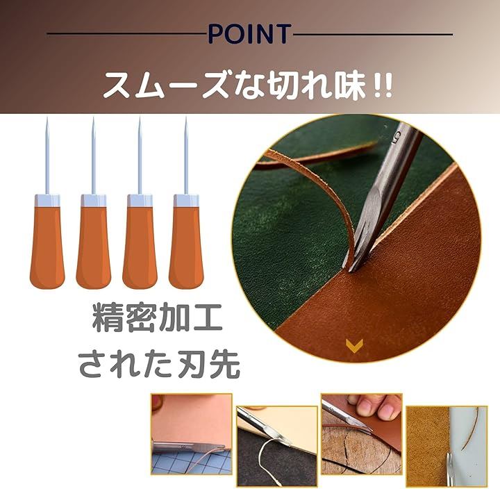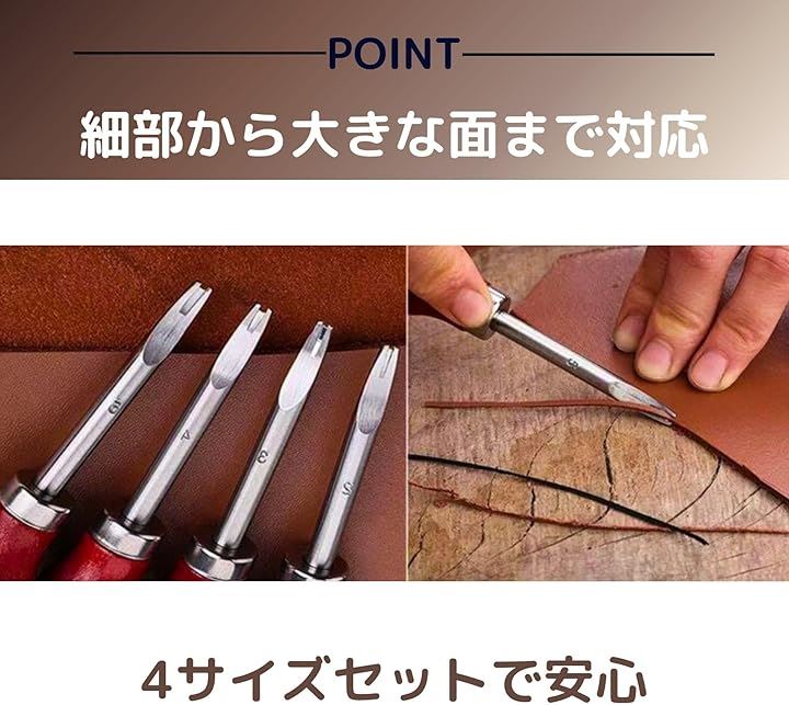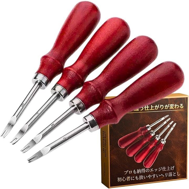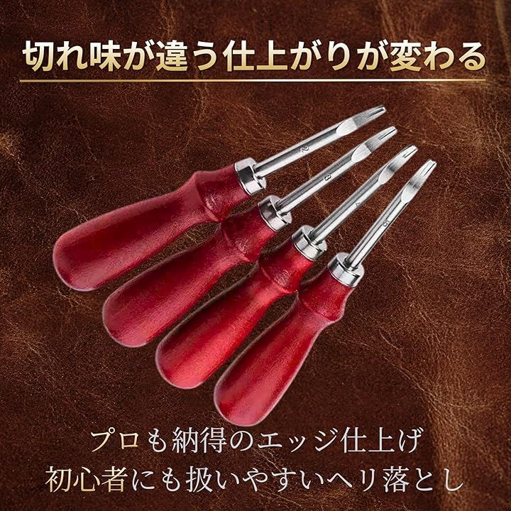 レザークラフト ヘリ落とし 4本セット 0.8/1.0/1.2/1.5|エッジ加工 面取り コバ仕上げ エッジャー 革細工 工具 初心者~プロ