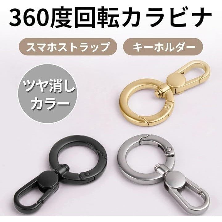 カラビナ ナスカン 丸 360度回転 リング キーホルダー 艶消し 2個セット