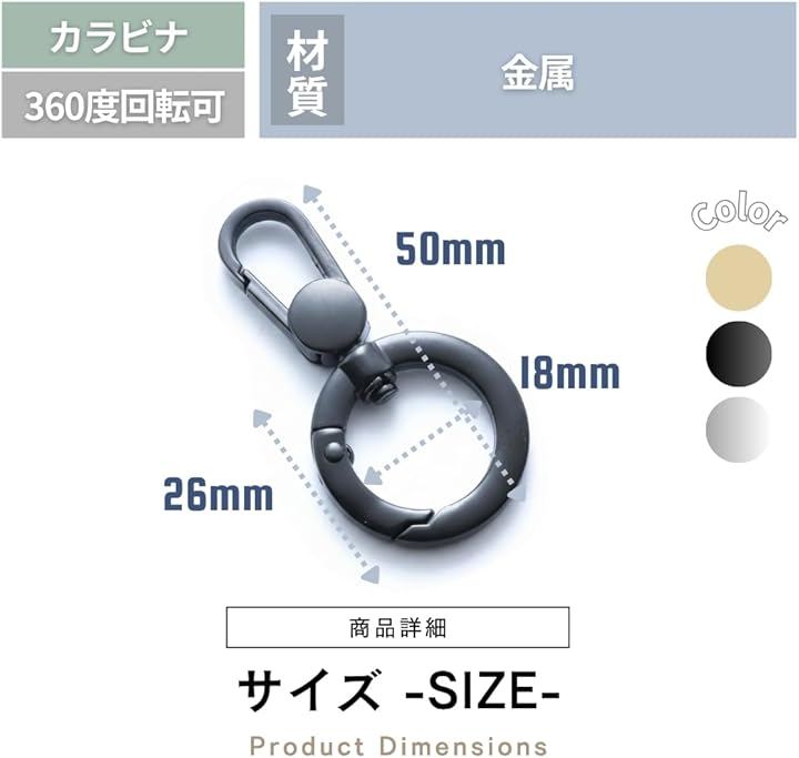 カラビナ ナスカン 丸 360度回転 リング キーホルダー 艶消し 単品