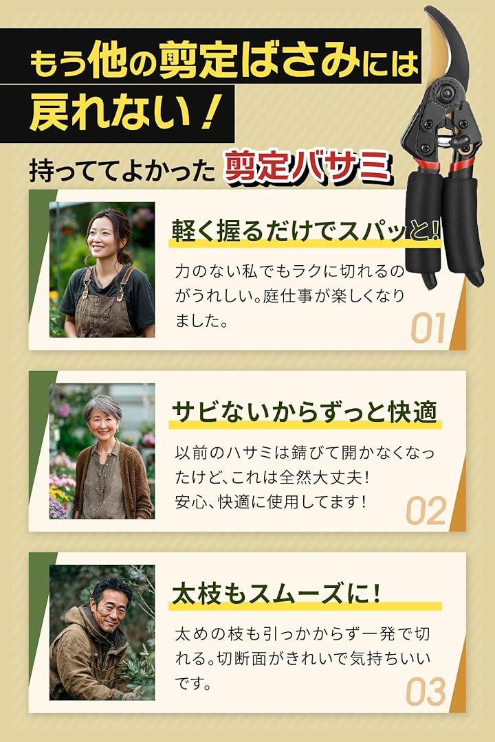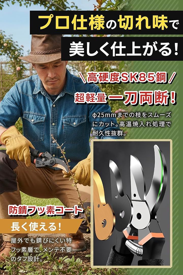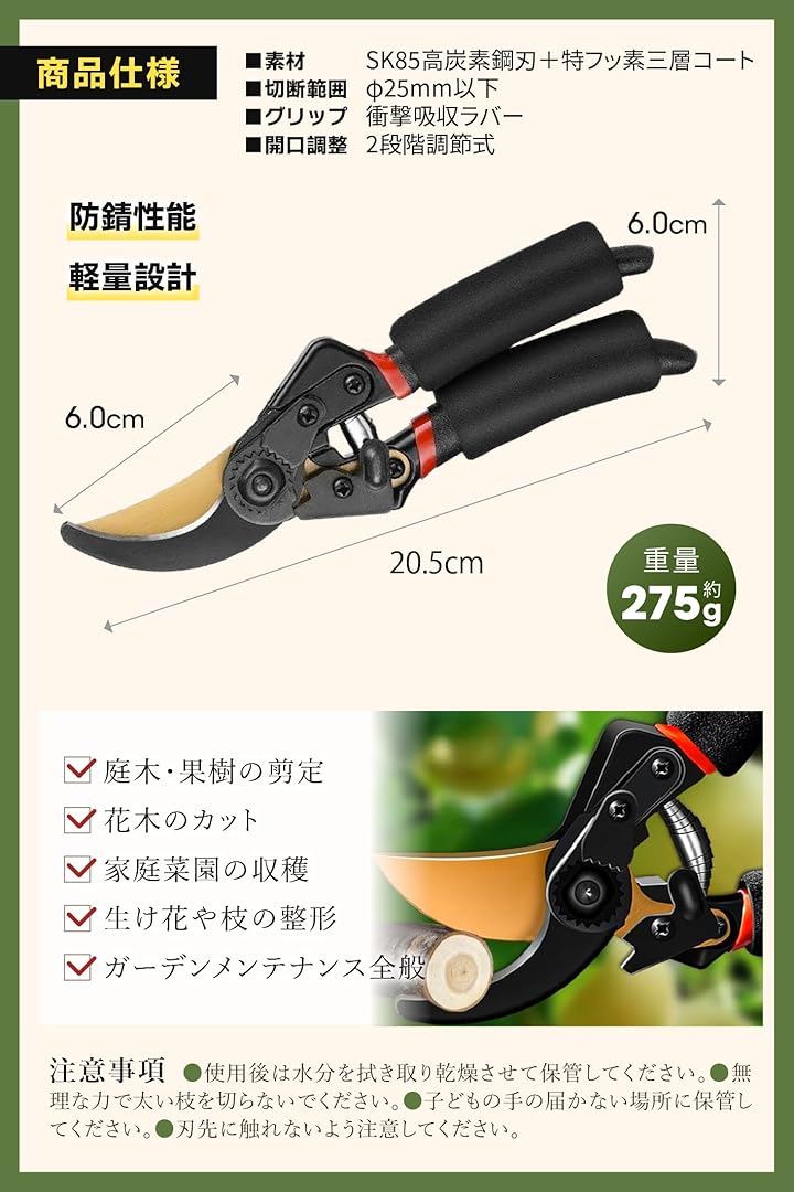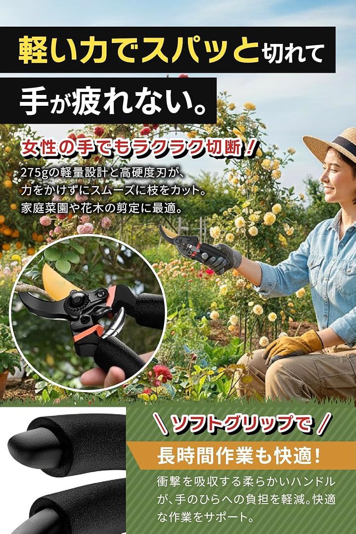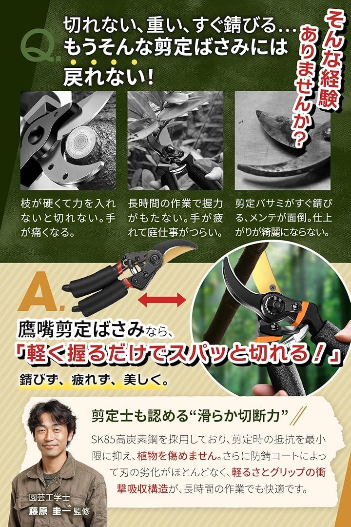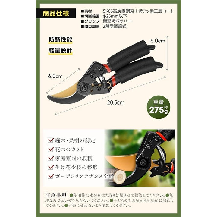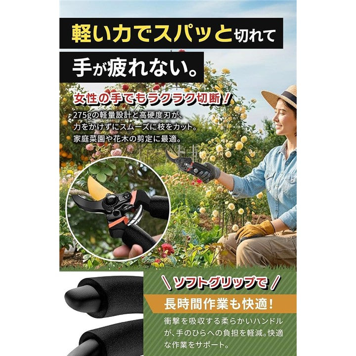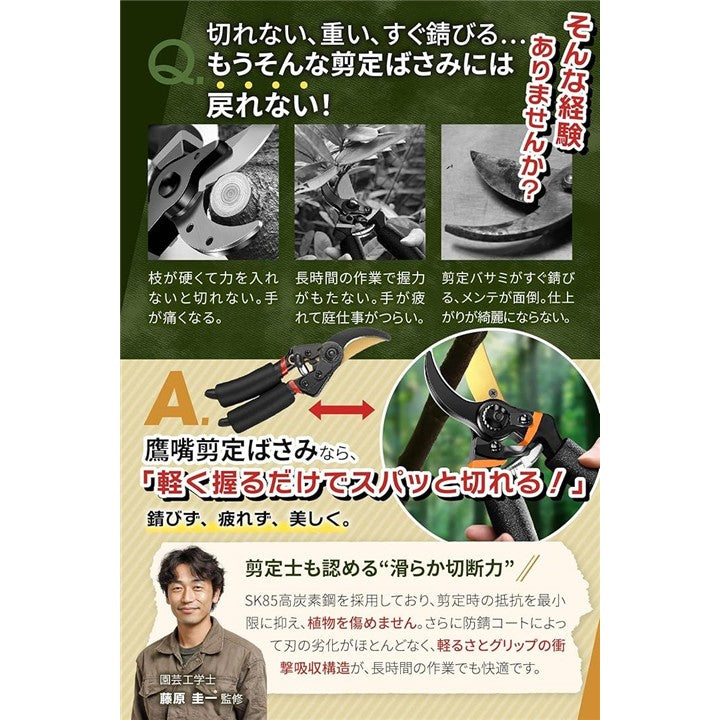 園芸工学士監修 剪定バサミ 強力 刃先カバー付き 枝切り 園芸用 はさみ 太枝対応 ケース付