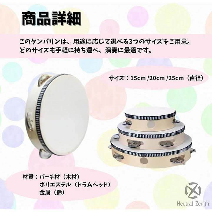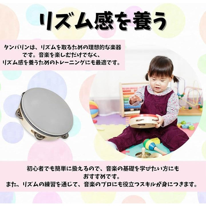タンバリン 楽器 打楽器 ダンス バレエ 木製 コンパクト 軽量 お手軽タンバリン
