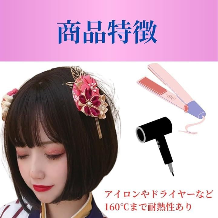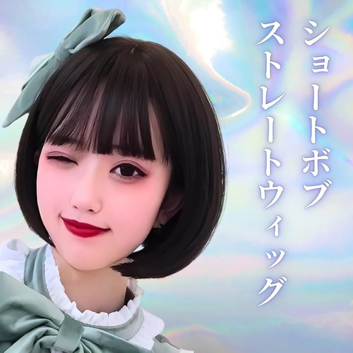 フルウィッグ ショートボブ ストレート 耐熱 ぱっつん 小顔効果 自然仕上げ アイロン ドライヤー 白髪隠し 脱毛支援 コスプレ・原宿系 ロリータ 仮装 ハロウィン ナチュラル