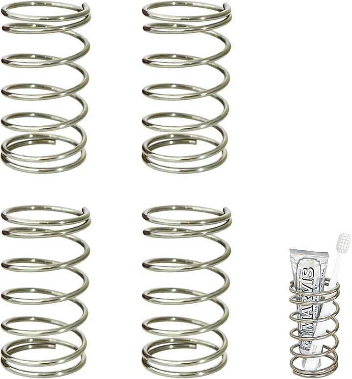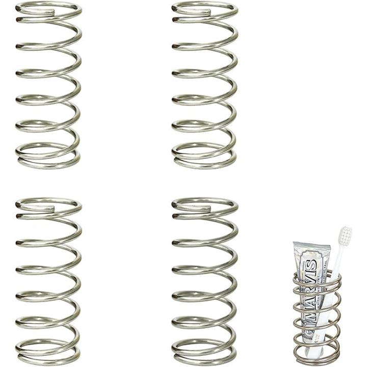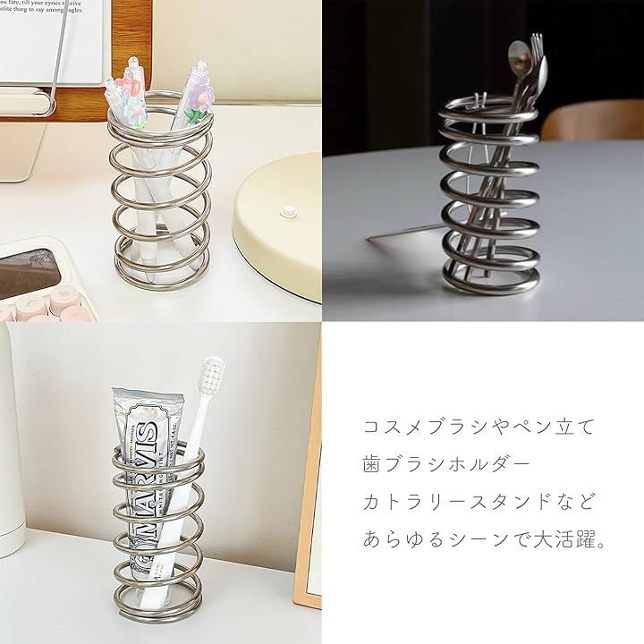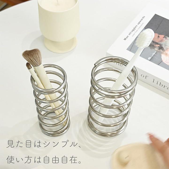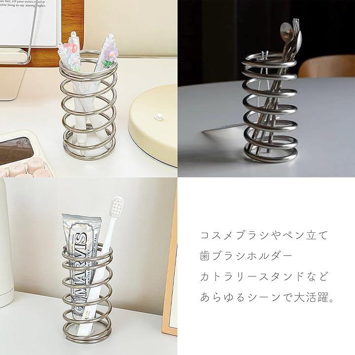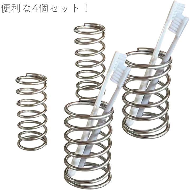 スプリング 収納 スタンド 4個セット バネ型 ステンレス ペン 歯ブラシ 歯磨き粉 メイクブラシ ホルダー インテリア 錆びない 速乾 多機能 卓上 浴室 洗面所