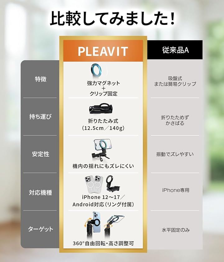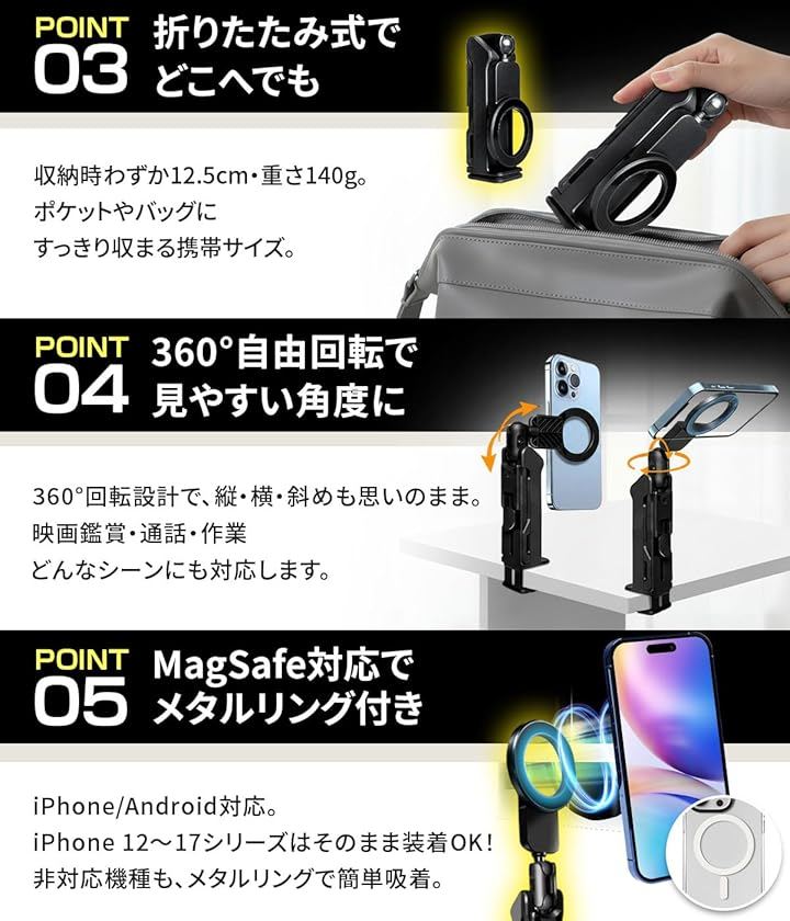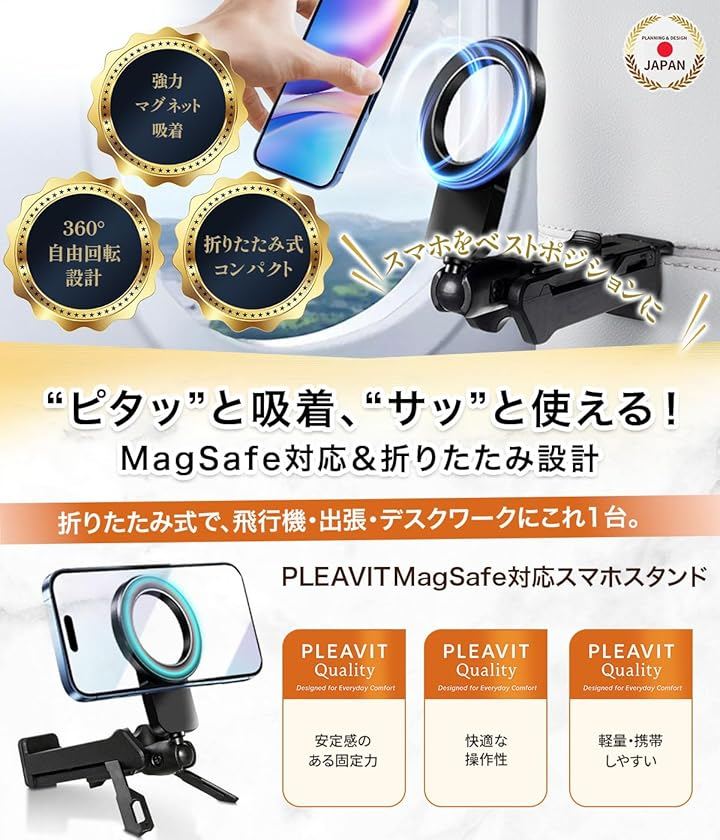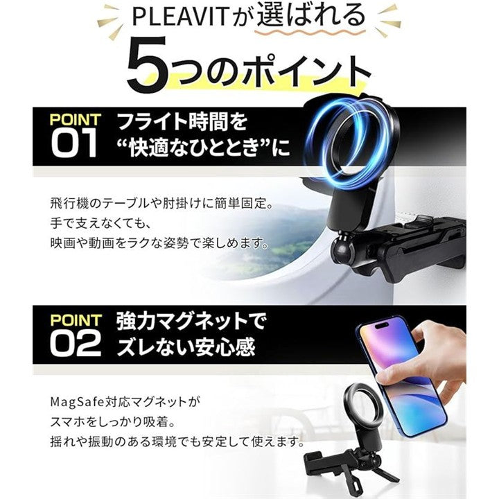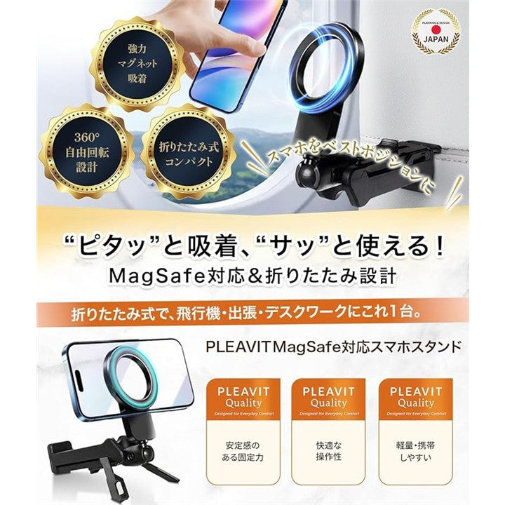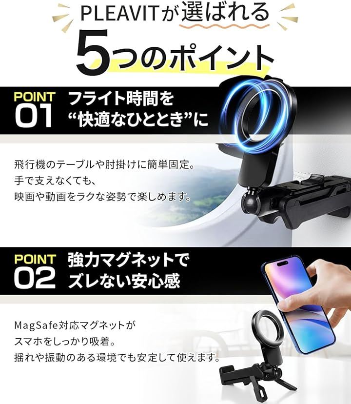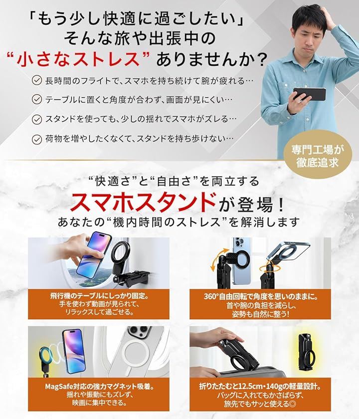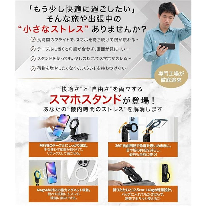 旅行や出張の息抜きに。飛行機 スマホスタンド 折りたたみ式 MagSafe対応 360°回転 軽量