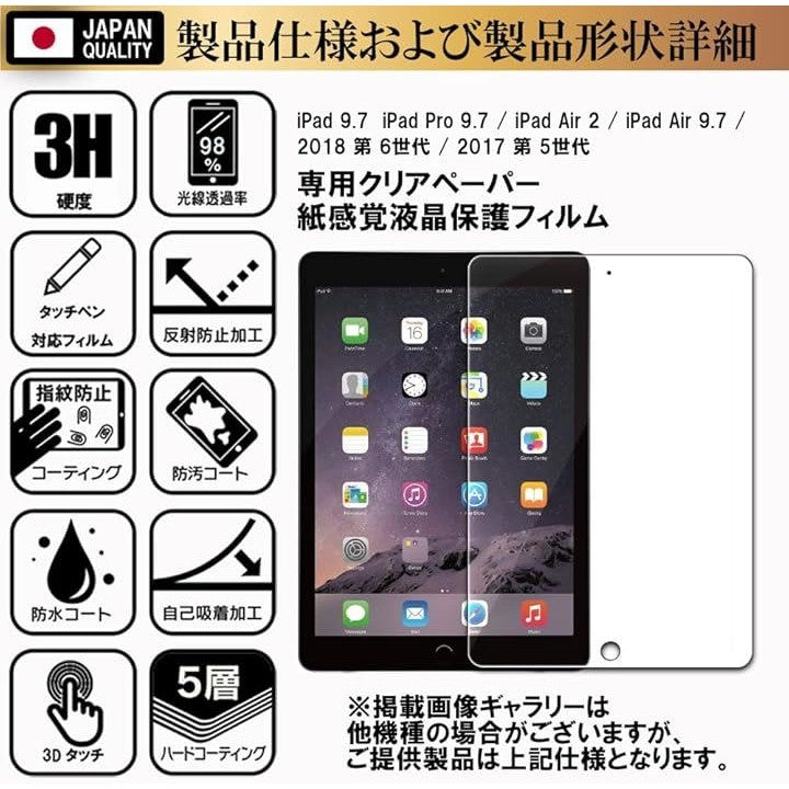 RISE 保護フィルム iPad 9.7 2018 第 6世代 / 2017 第 5世代 / iPad Pro 9.7 / Air 2 / Air 9.7 用 フィルム クリア アンチグレア ペーパー 紙 テクスチャ 紙のような描き心地 |