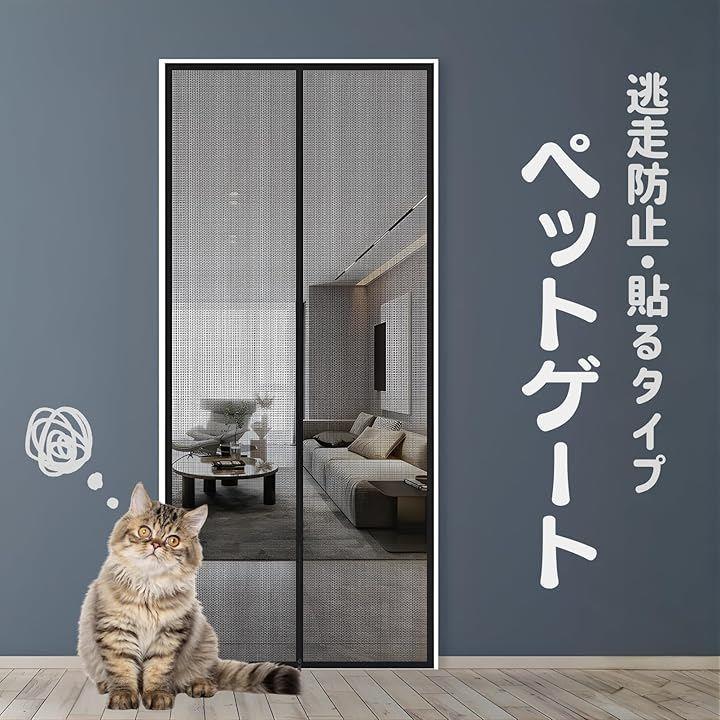 ペットゲート 犬 猫 メッシュ ファスナー 貼るタイプ 逃走防止