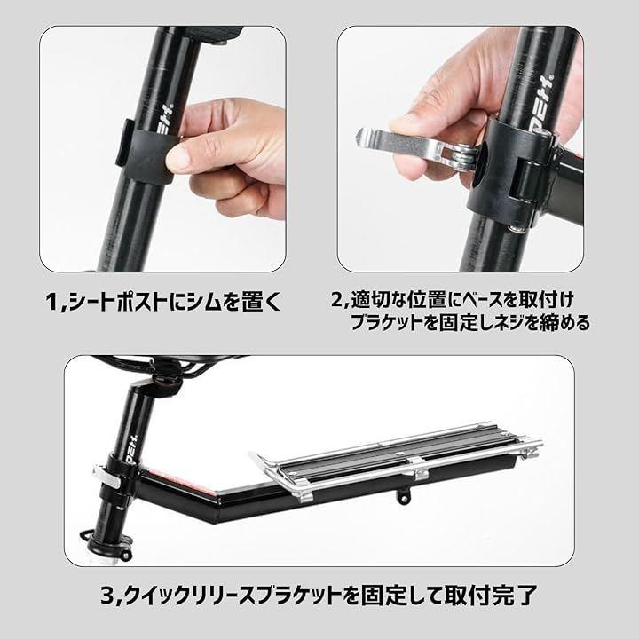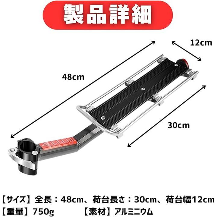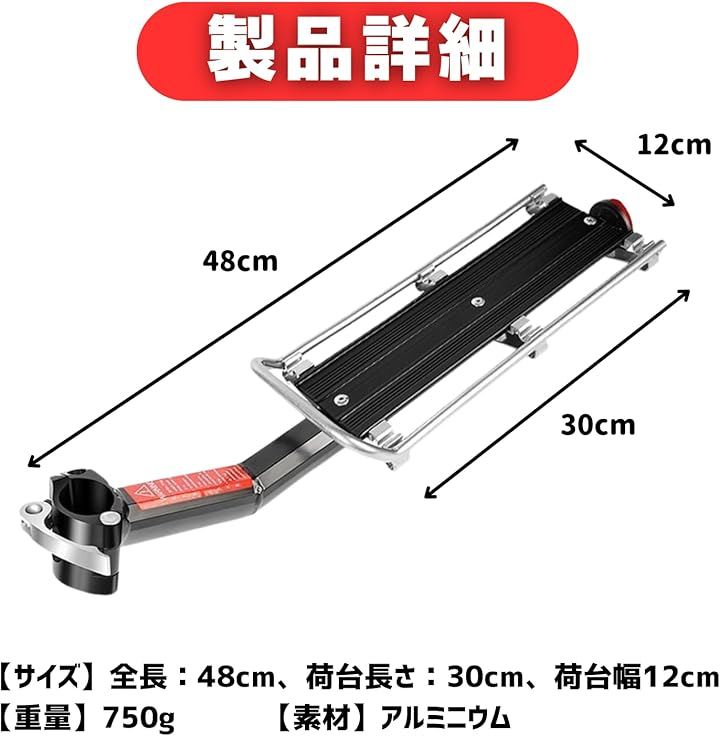 自転車 リアキャリア 荷台 シートポスト リフレクター付き 後付け アルミニウム