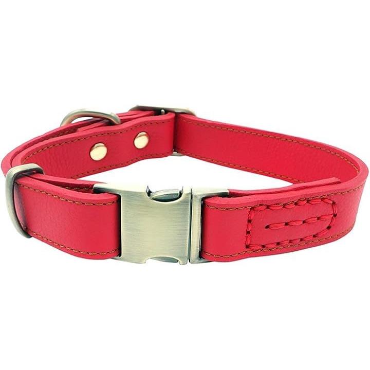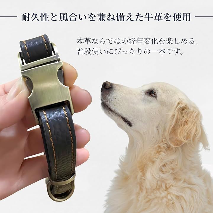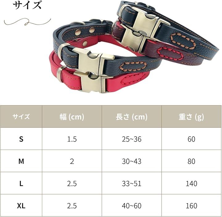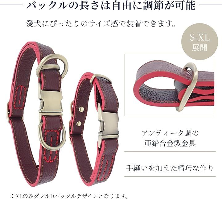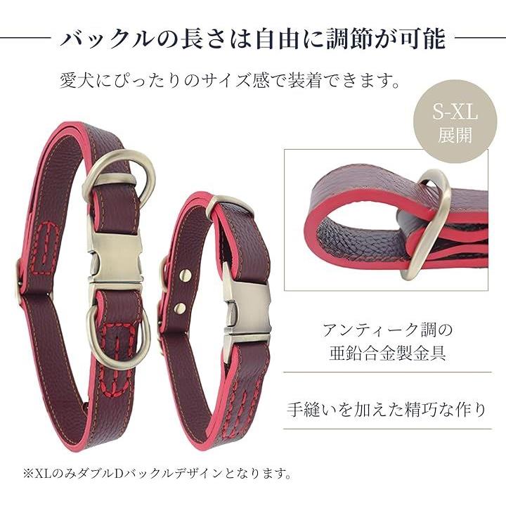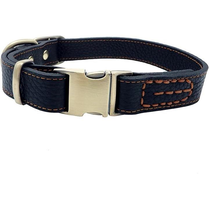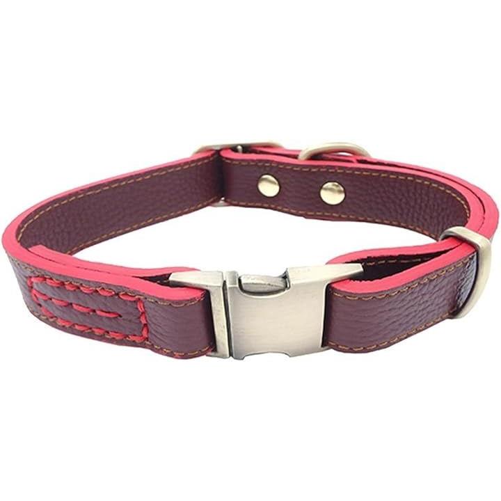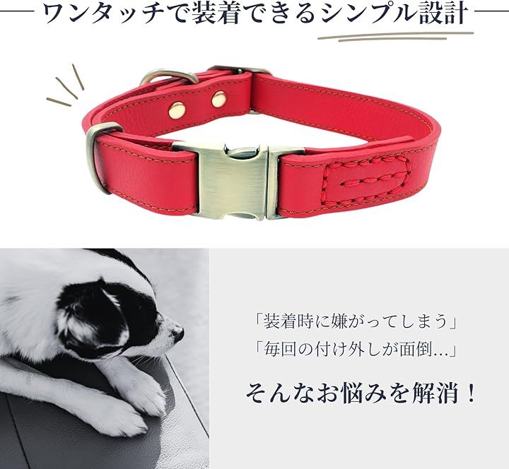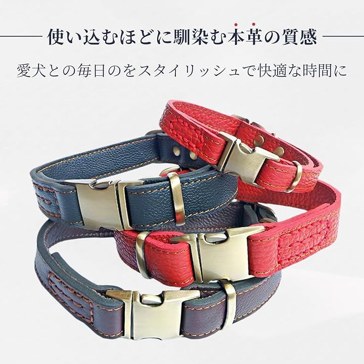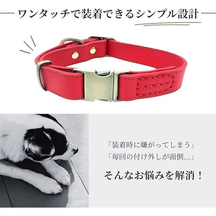 犬 首輪 レザー 本革 金属製バックル ワンタッチ着脱 サイズ調節可能