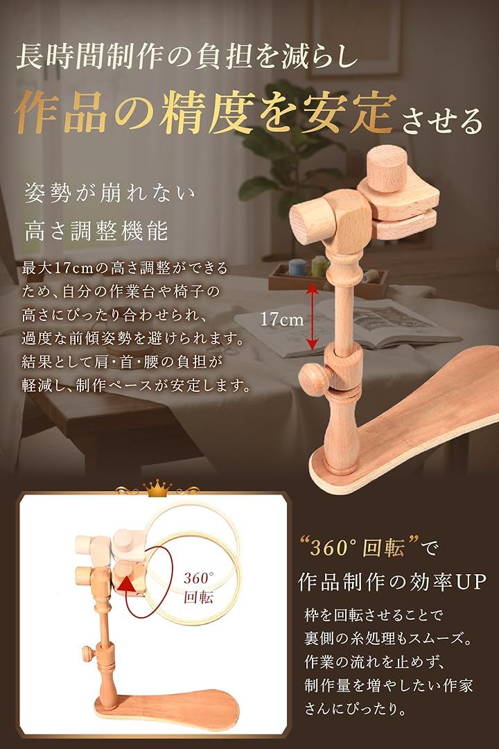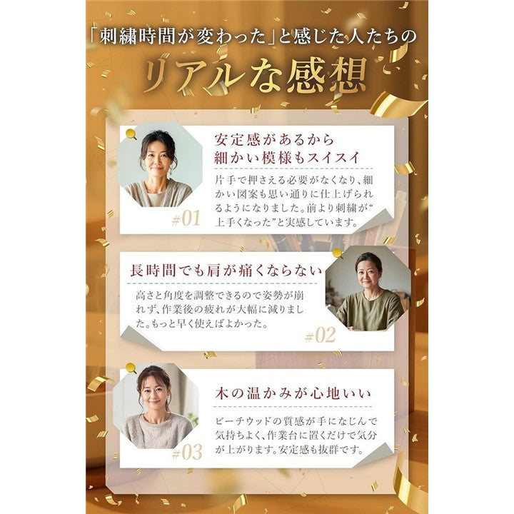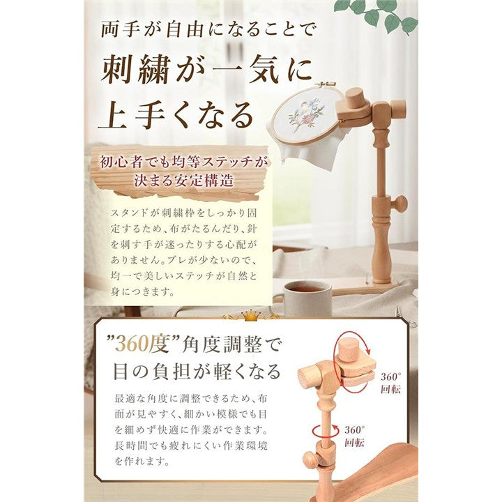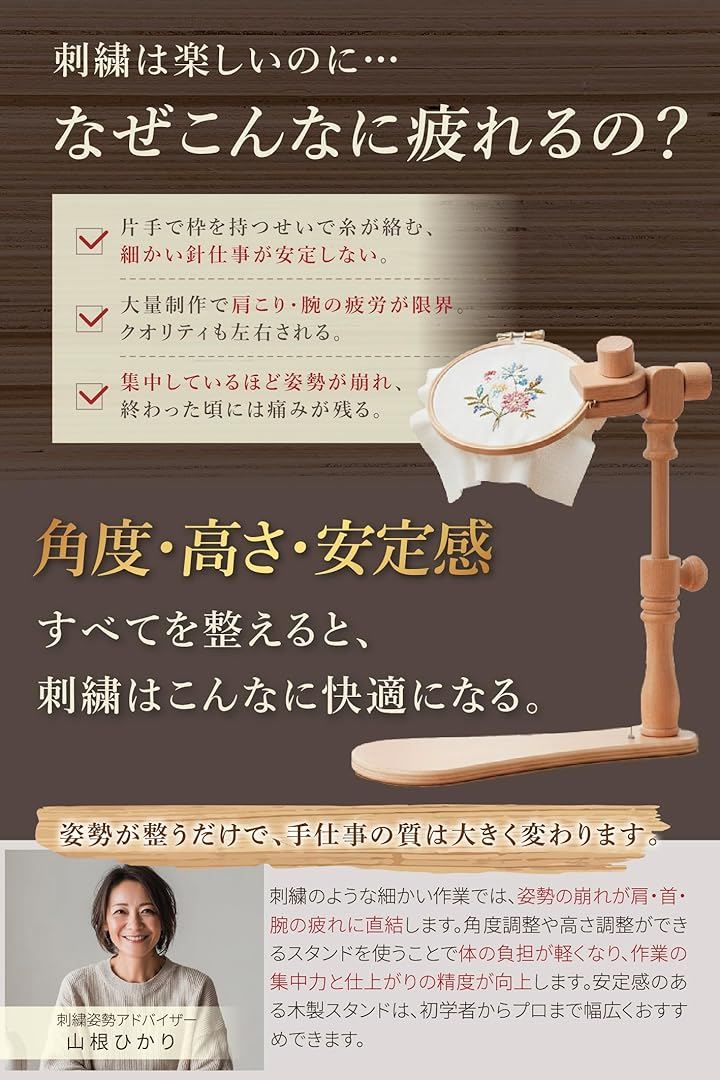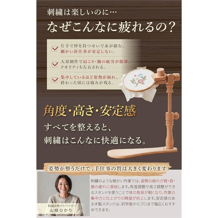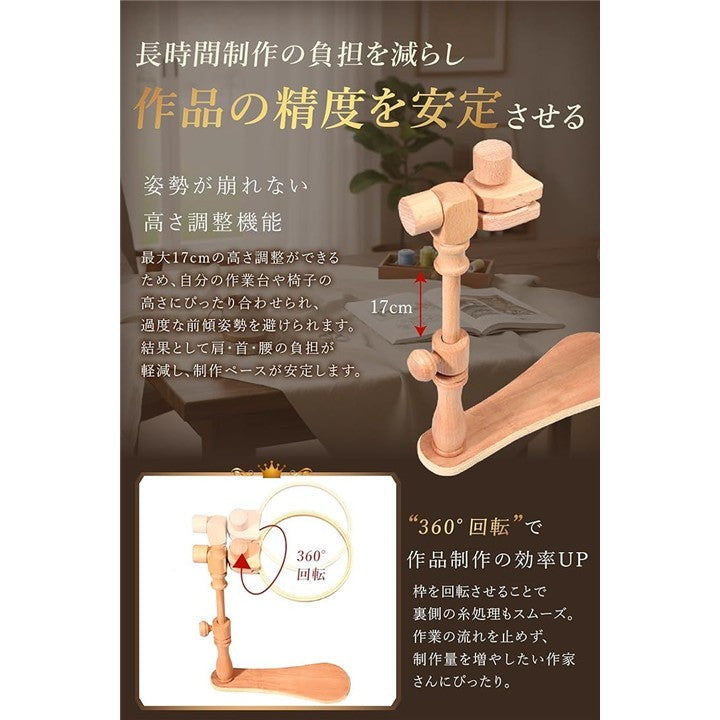 刺繍姿勢アドバイザー監修 刺繍スタンド 卓上 木製 フレーム 両手 固定 調整可能 コンパクト 初心者