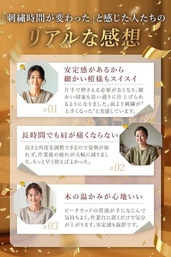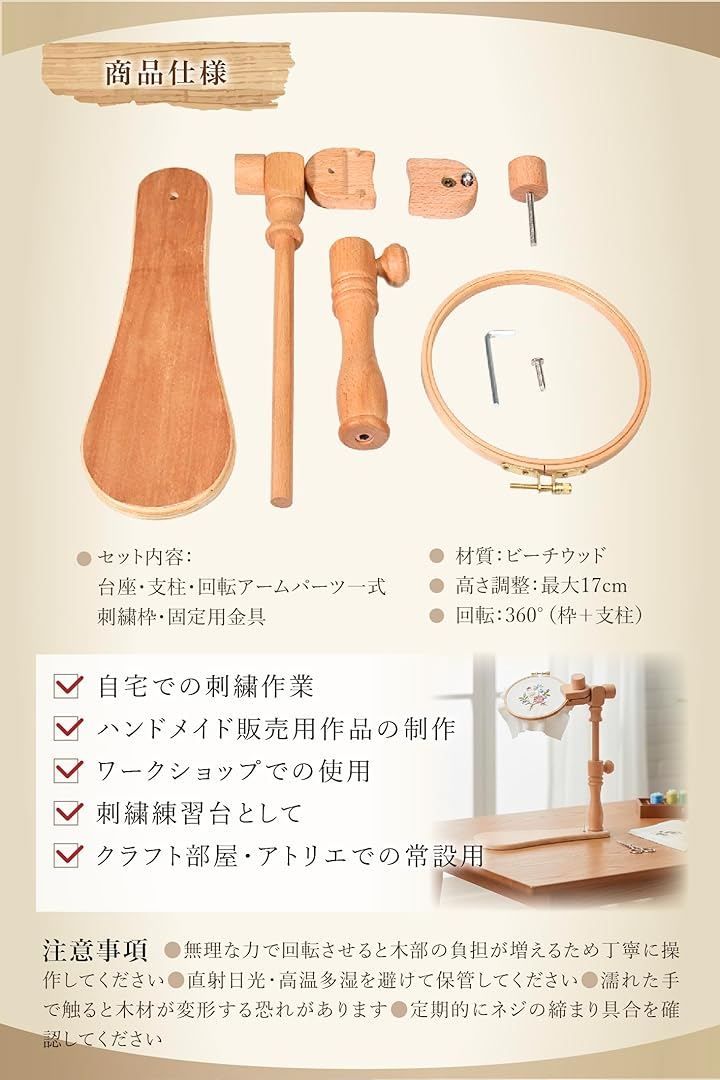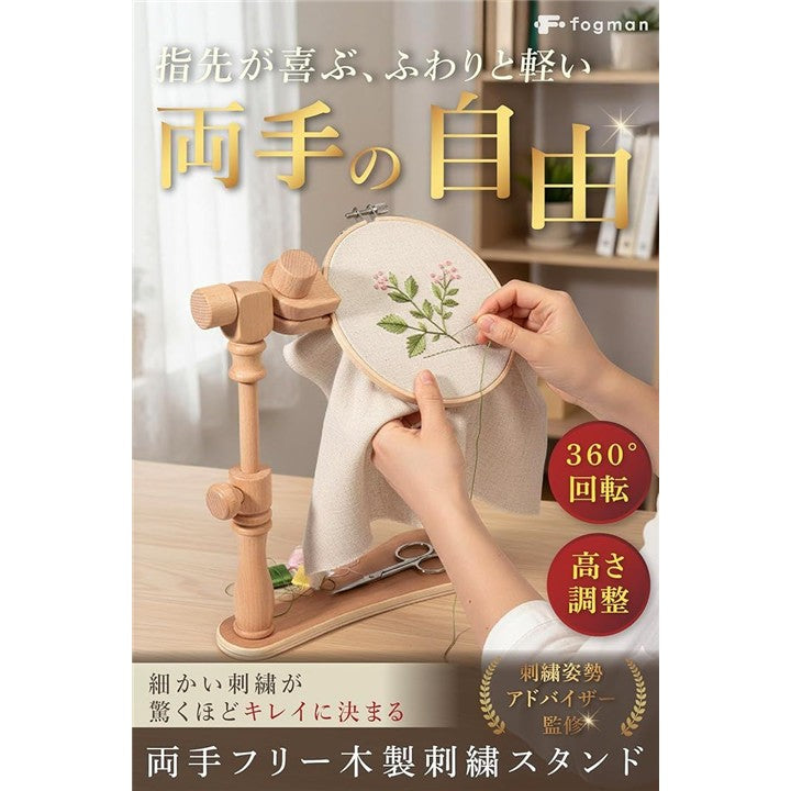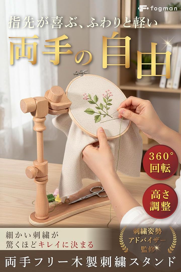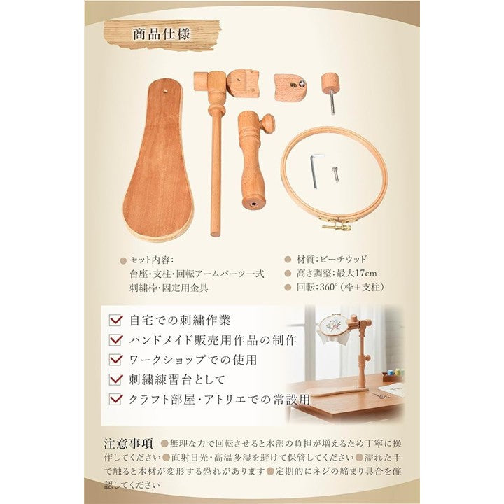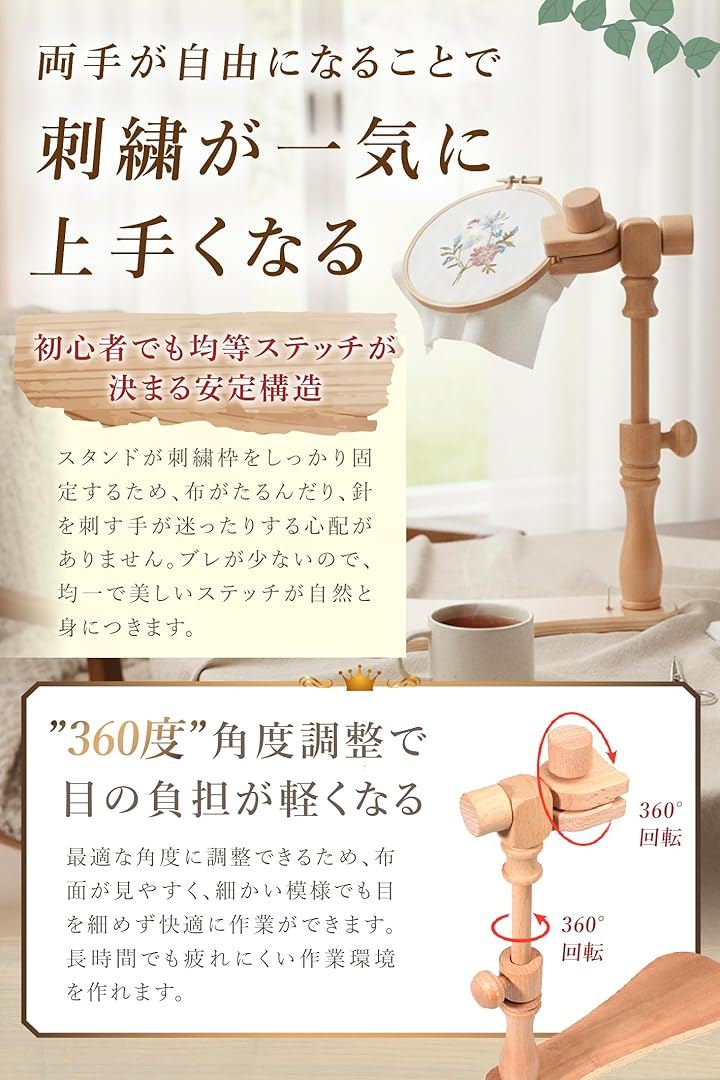 刺繍姿勢アドバイザー監修 刺繍スタンド 卓上 木製 フレーム 両手 固定 調整可能 コンパクト 初心者