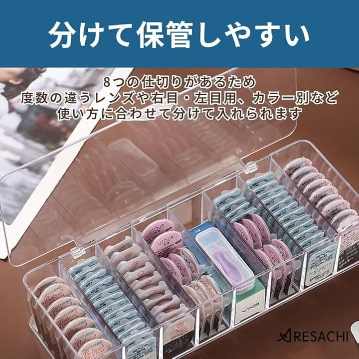 コンタクトケース カラコンケース 蓋付き 仕切り コンパクト