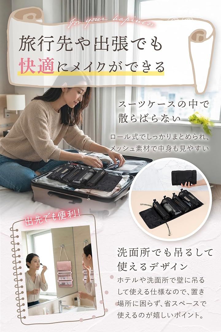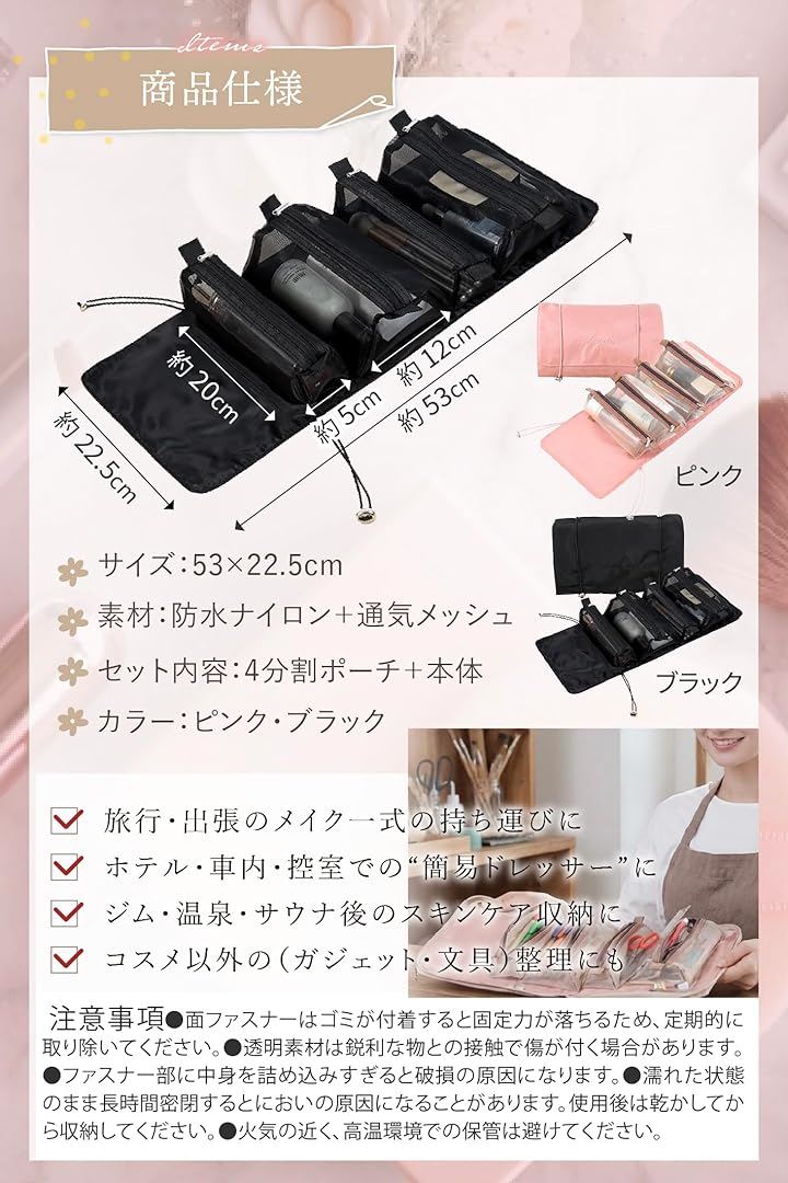 収納アドバイザー監修 メイクポーチ 化粧ポーチ トラベルポーチ コスメポーチ 大容量 吊り下げ 仕切り