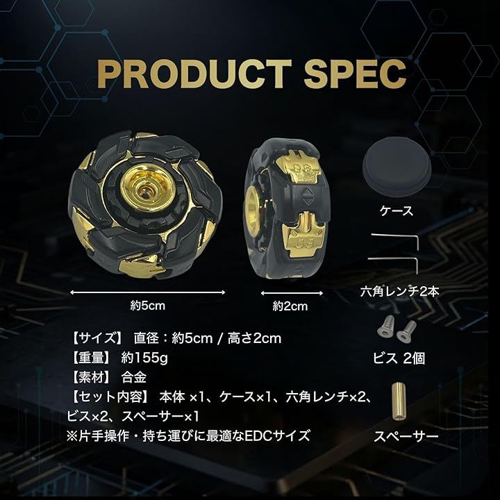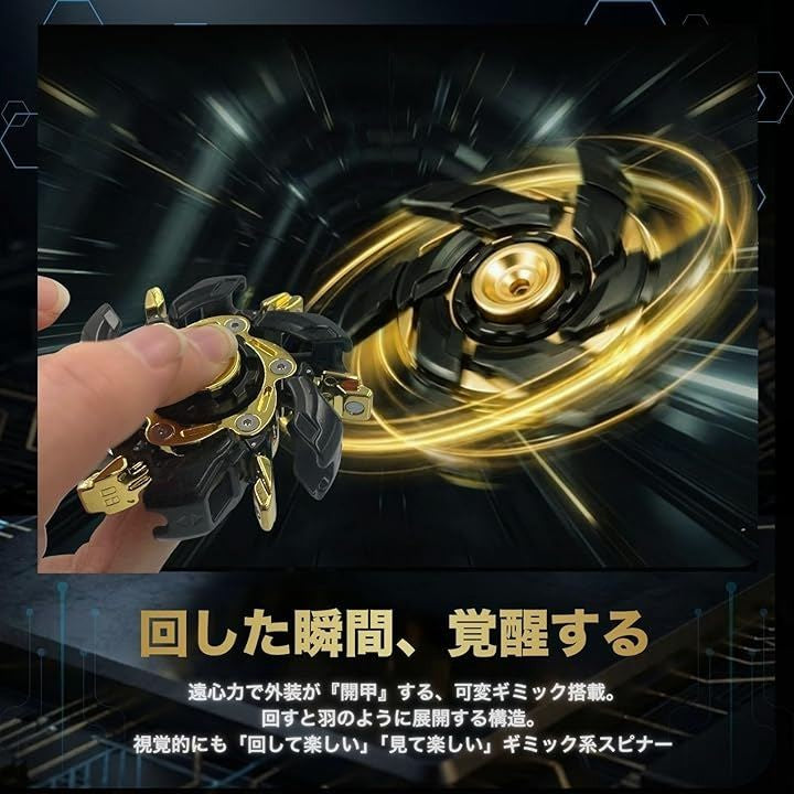 フィジェットトイ 黒金 合金メタル ガジェット 大人用 暇つぶし 手遊び 感覚刺激 回転ギミック 重量感 高耐久