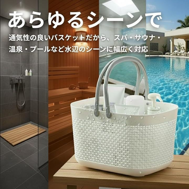 お風呂 カゴ バスケット 持ち運び 洗面用具 銭湯 サウナ かご 温泉 手提げ 水切り