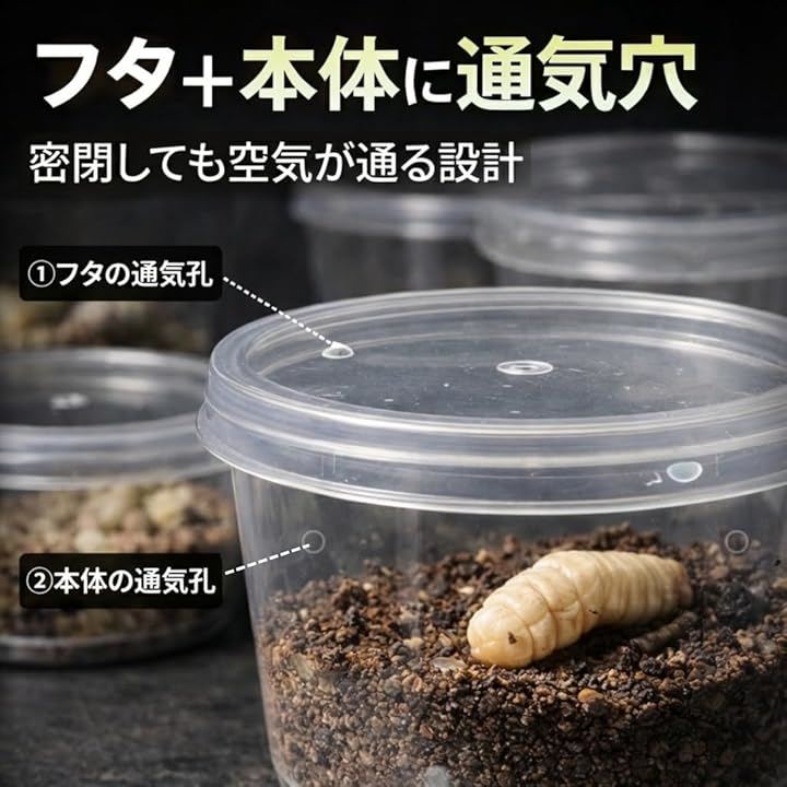 カブトムシ プリンカップ 幼虫 小分け ケース 昆虫 飼育 蓋付き 穴あき