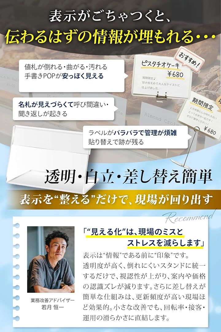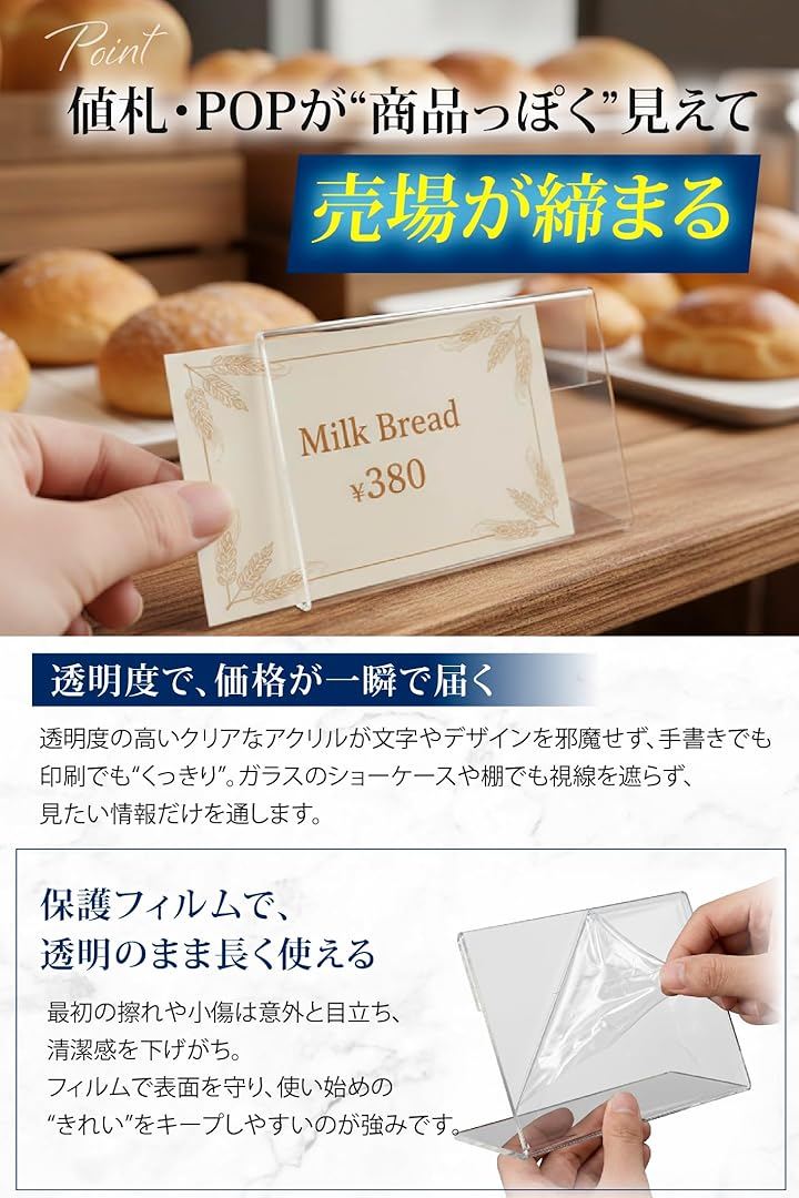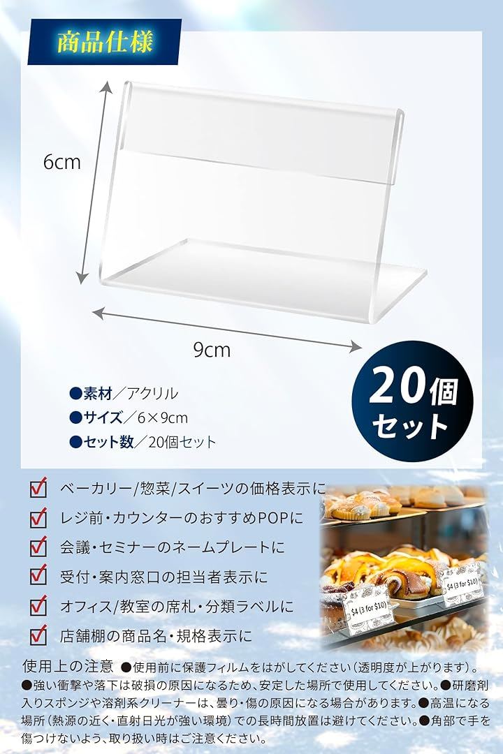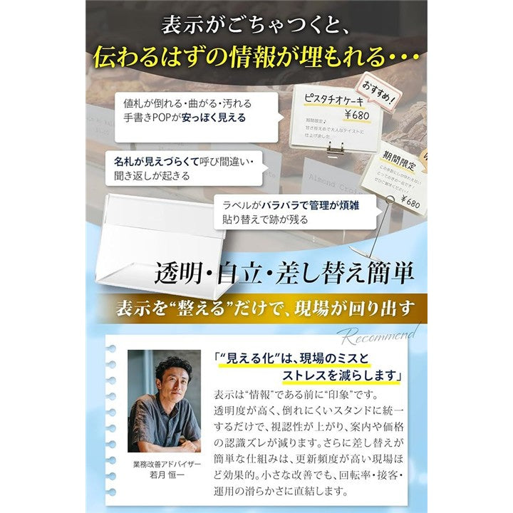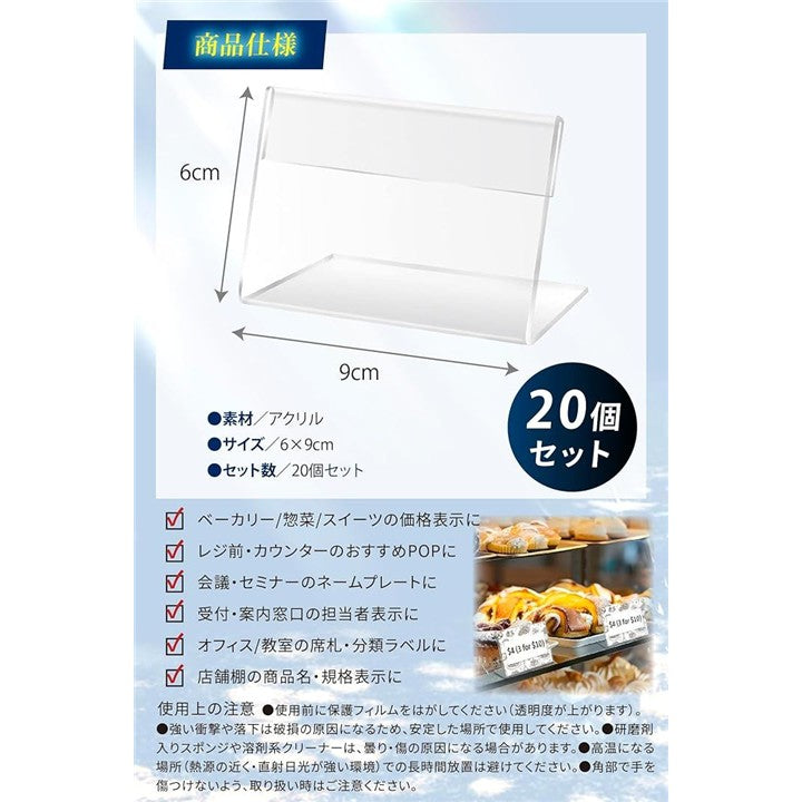 展示ディレクター監修 アクリル カードスタンド L字型 透明 卓上 ポップスタンド プライス表示 20個セット