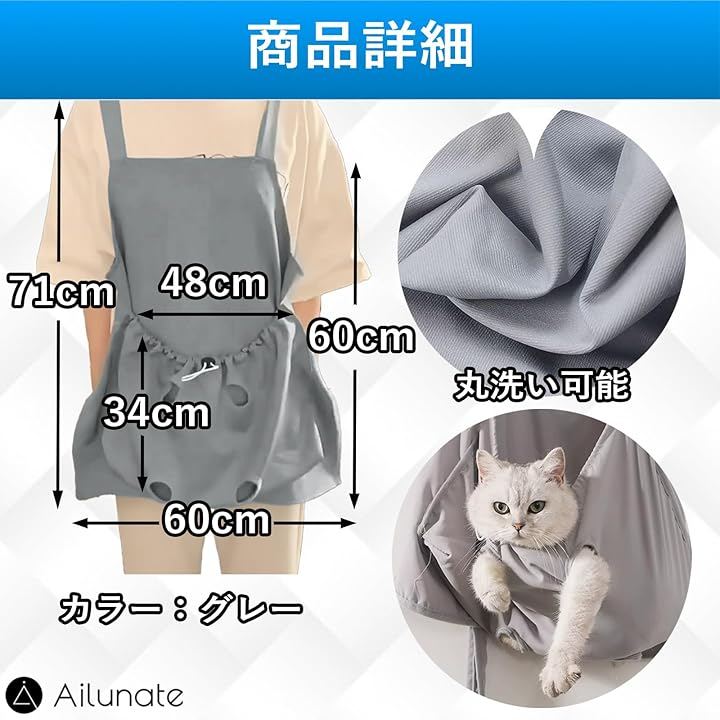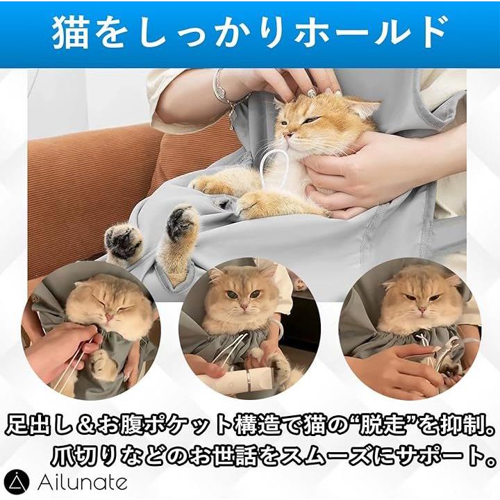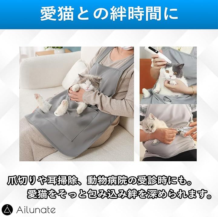 猫エプロン 抱っこ紐 抱っこ用エプロン 足だし穴付き 爪切りサポート 補助 通気素材 丸洗い可能