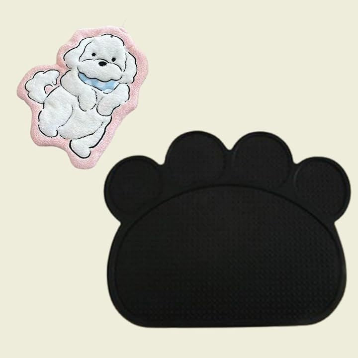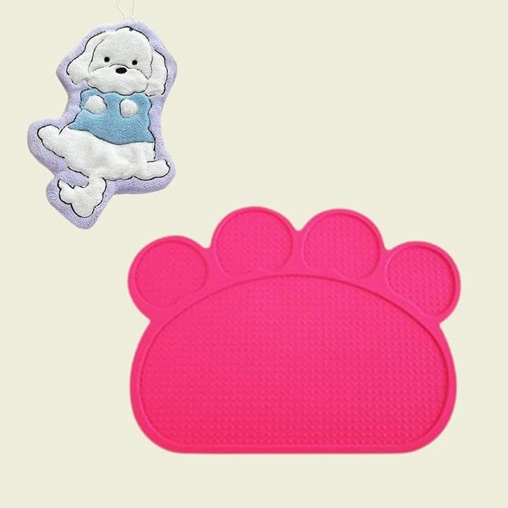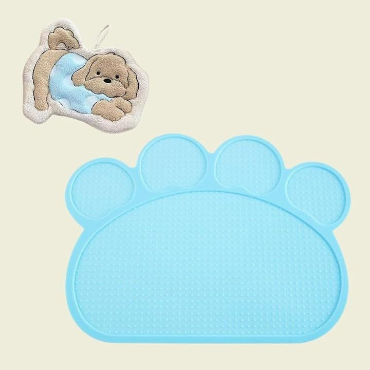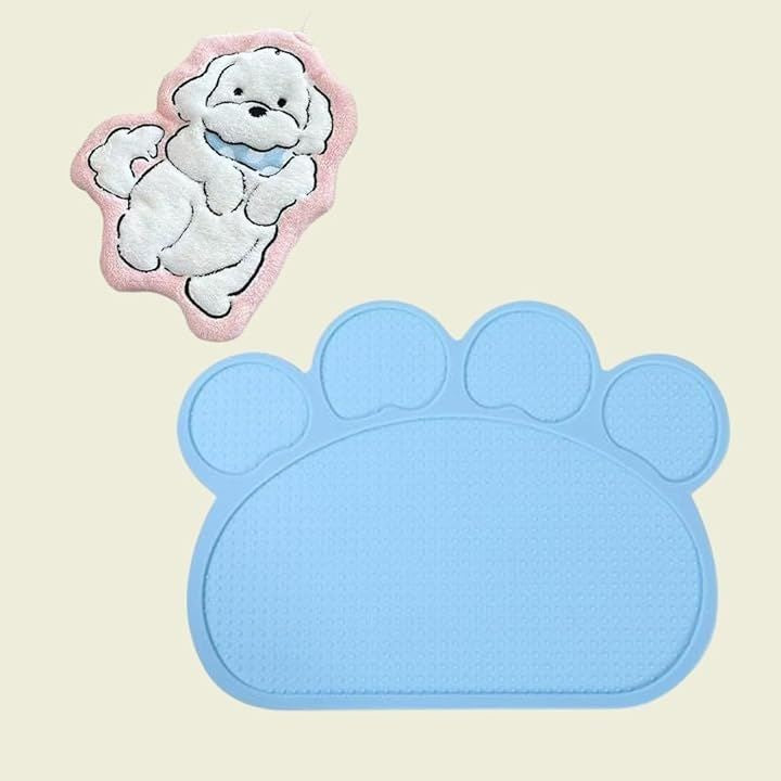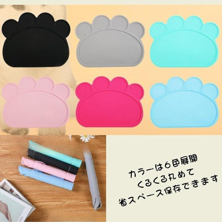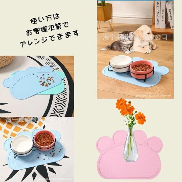 ペット シリコン食事マット 肉球型 タオル セット 滑り止め付き 多色展開