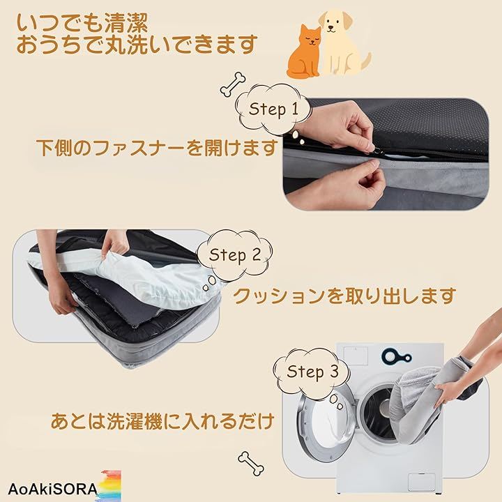 ペットベッド 犬 猫 洗える 低反発 ふわふわ起毛カバー カバー取り外し可 防水ライナー 滑り止め付き