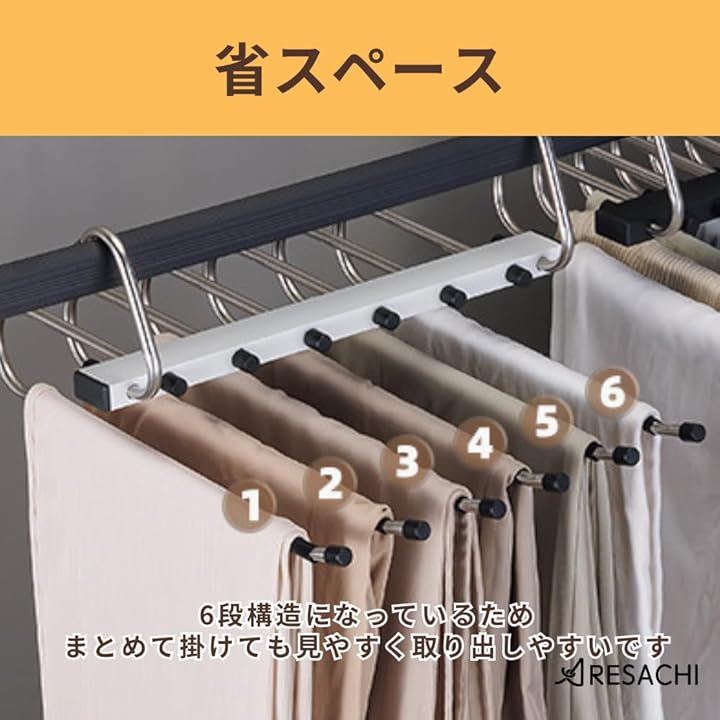ズボンハンガー スラックスハンガー 省スペース 6段 折りたたみ ステンレス