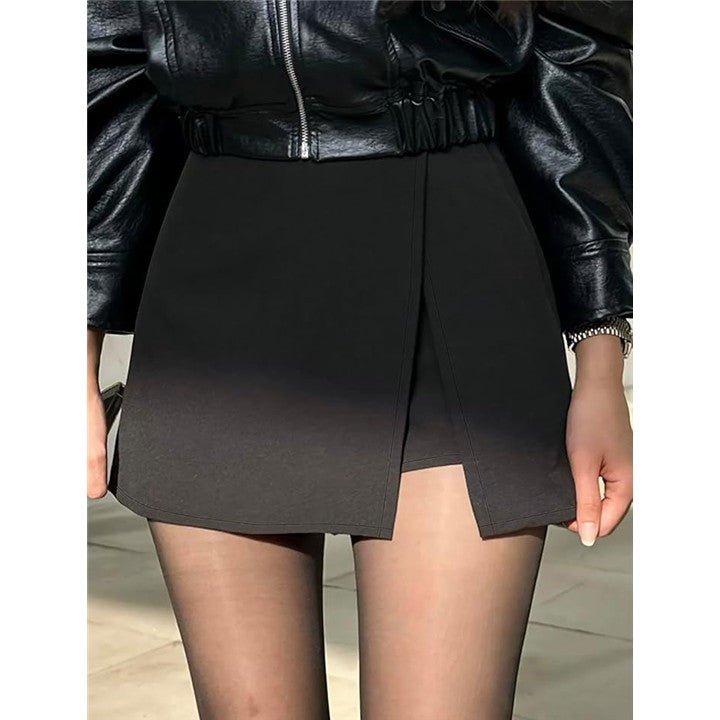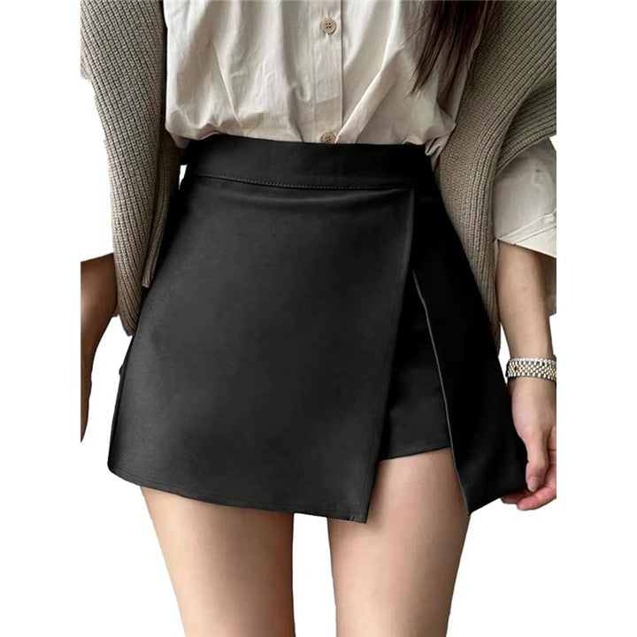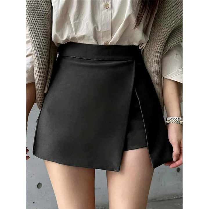 アシメ スカート ショーツ ラップスカパン ミニ 不規則 デザイン スリット ハイウエスト 大きいサイズ 体型カバー ショート ボトムス レディース シンプル 無地 カジュアル 韓国風