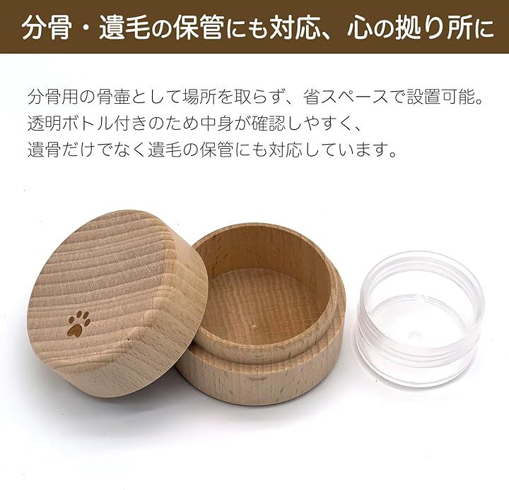 動物看護師 監修 ペット用 ミニ骨壷 木製 遺骨入れ 分骨 手元供養 密封 防湿 透明ケース 持ち歩き メモリアル