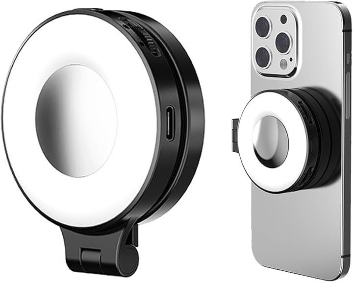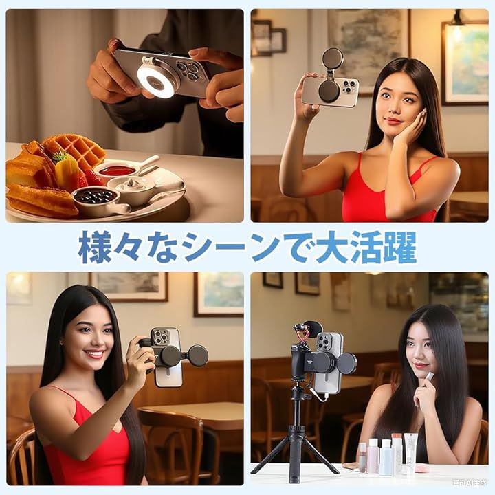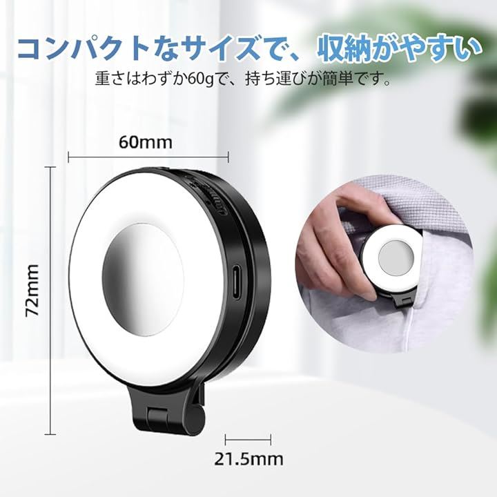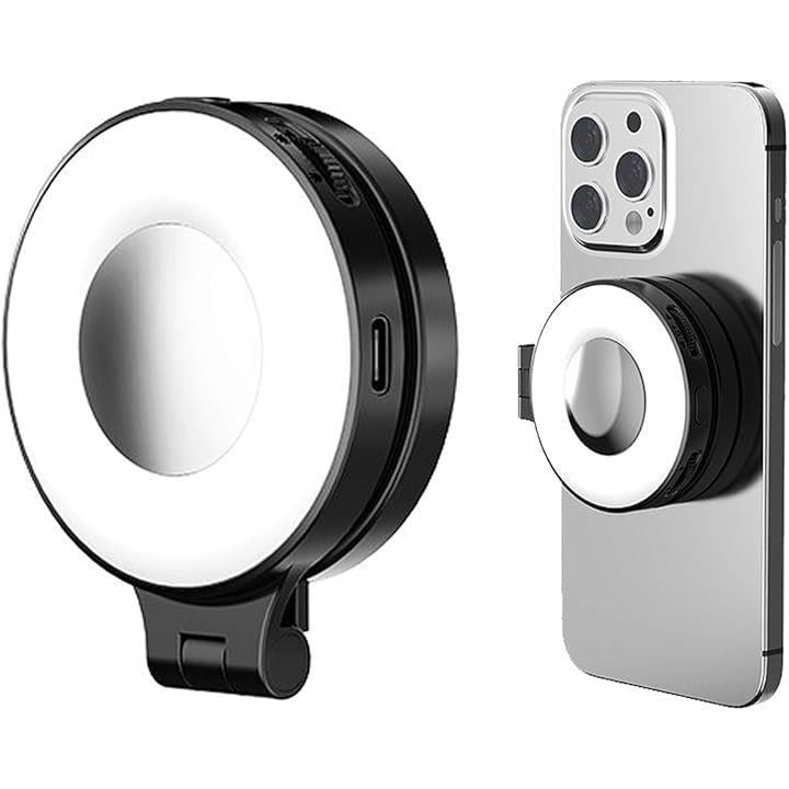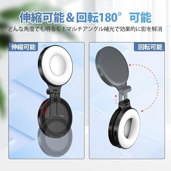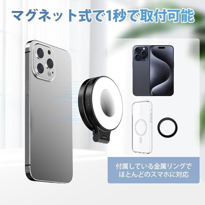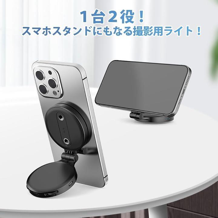 1台2役リングライト MagSafe対応 撮影用ライト マグセーフ 自撮りライトスマホライト USB充電式 48個LED搭載 3色モード 2500~8500K色温度調節 回転可能